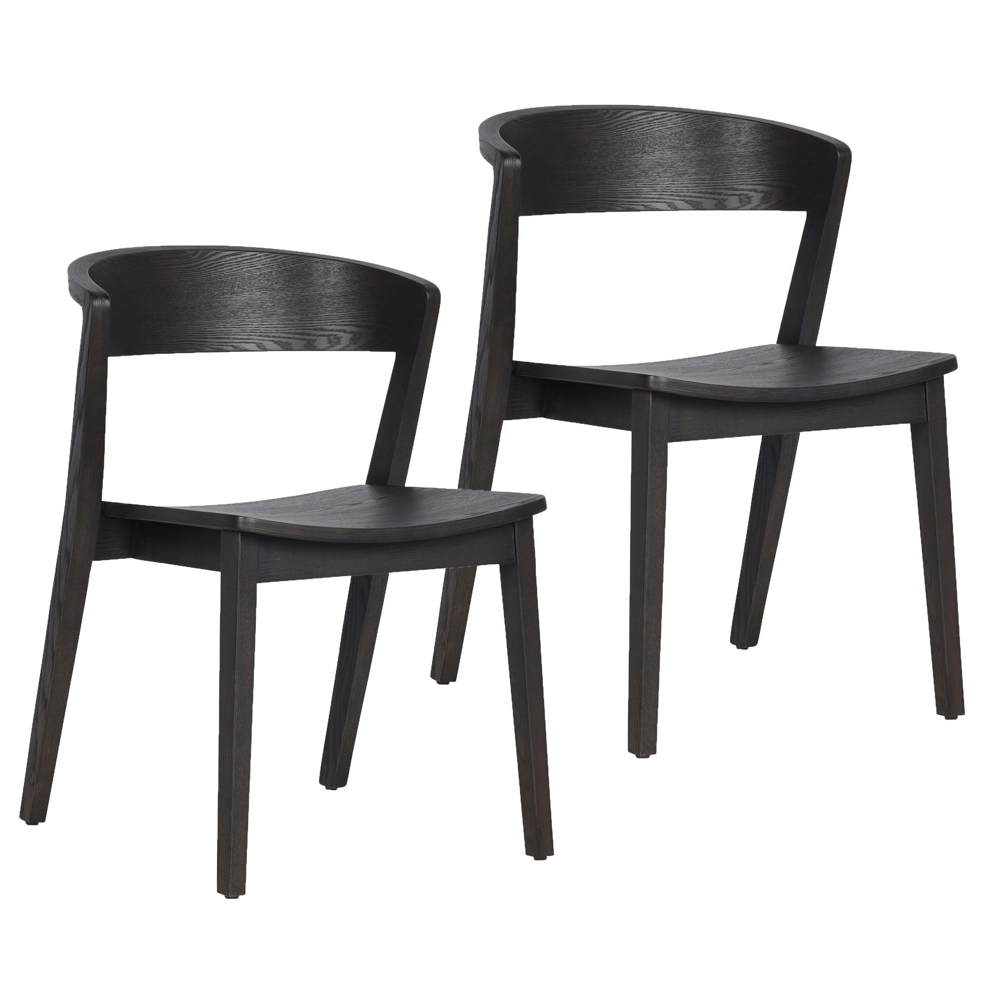 Sturdy solid wood chairs with mid-century modern styling. Rich finishing on the ash veneer is an easy match for various décor styles. Comfortable curved back creates a trendy look and provides support. Perfect for casual dining spaces. These commercial-grade chairs are suitable for residential or commercial use.