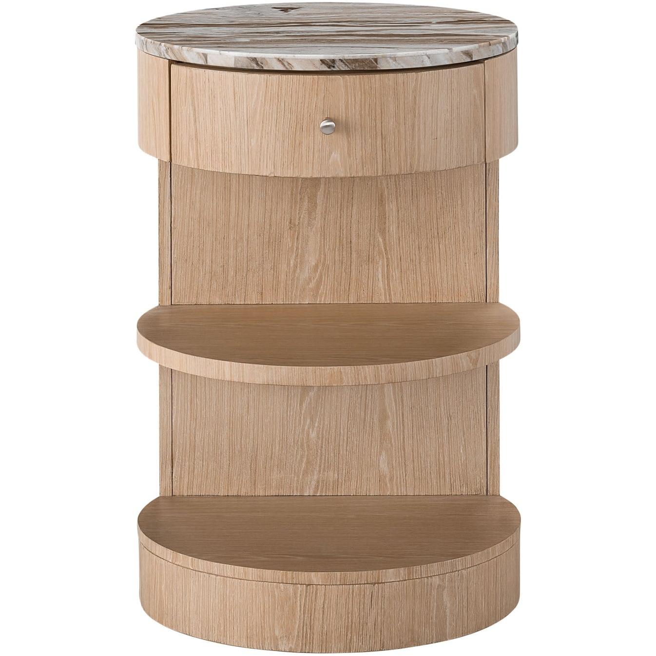 Showcasing a free-spirited silhouette, the Round Nightstand pushes design boundaries with its half-moon shaped shelves and a complementing marble top.