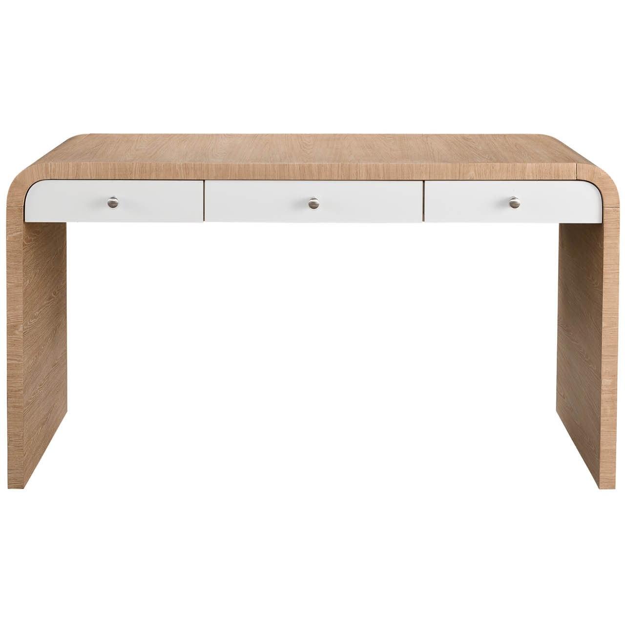 Introduce a natural flair to home office spaces with the Writing Desk, a staple accent piece showcasing three succinct drawers encased by a rounded, oak-finished frame.