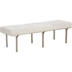 Defined by its slim metal frame and upholstered seat in smooth kona camel fabric, the Nuvella Bench offers a modern silhouette with subtle architectural influence. Its balanced design allows it to move easily between entryways, bedrooms, and dining areas, offering a stylish yet practical addition wherever it is placed.