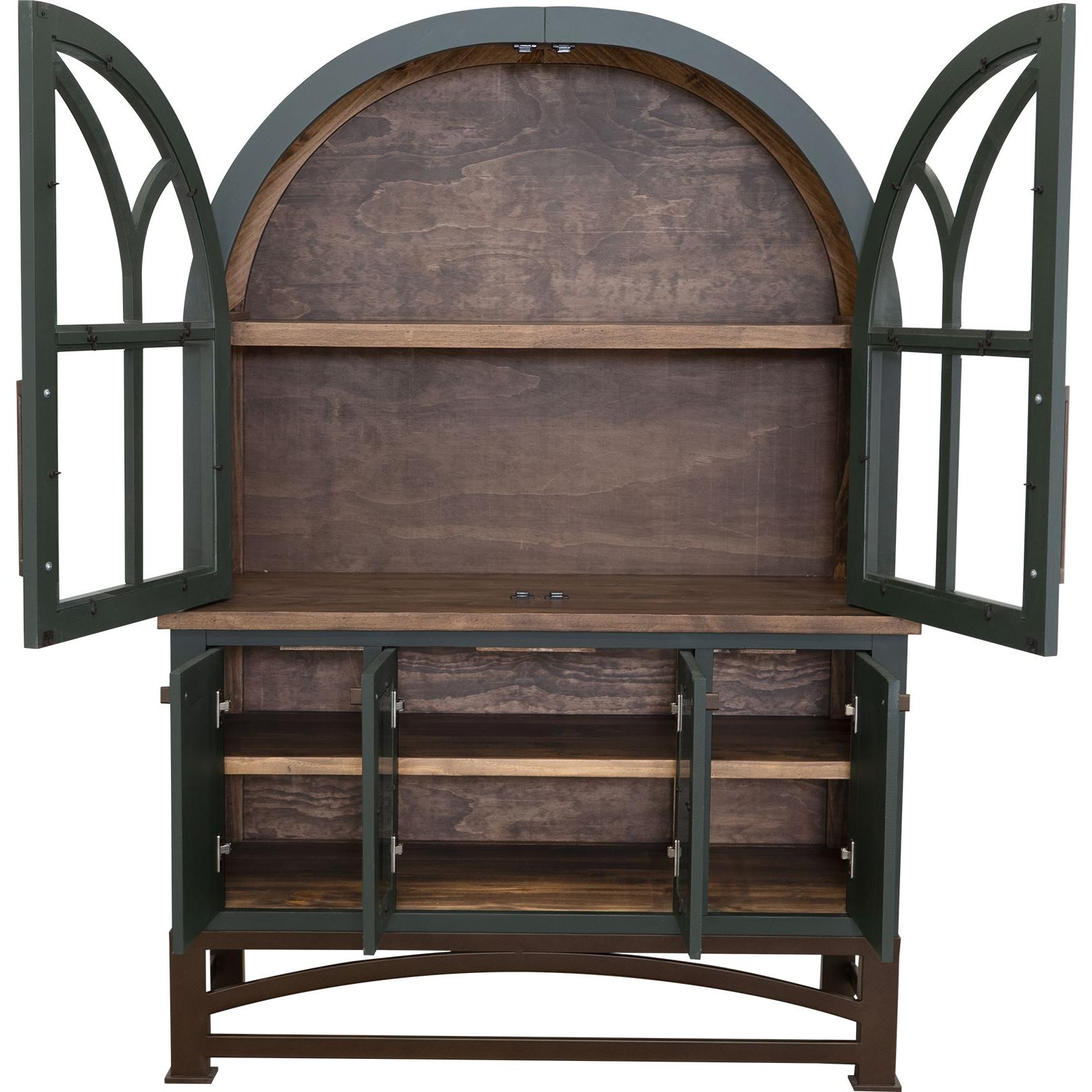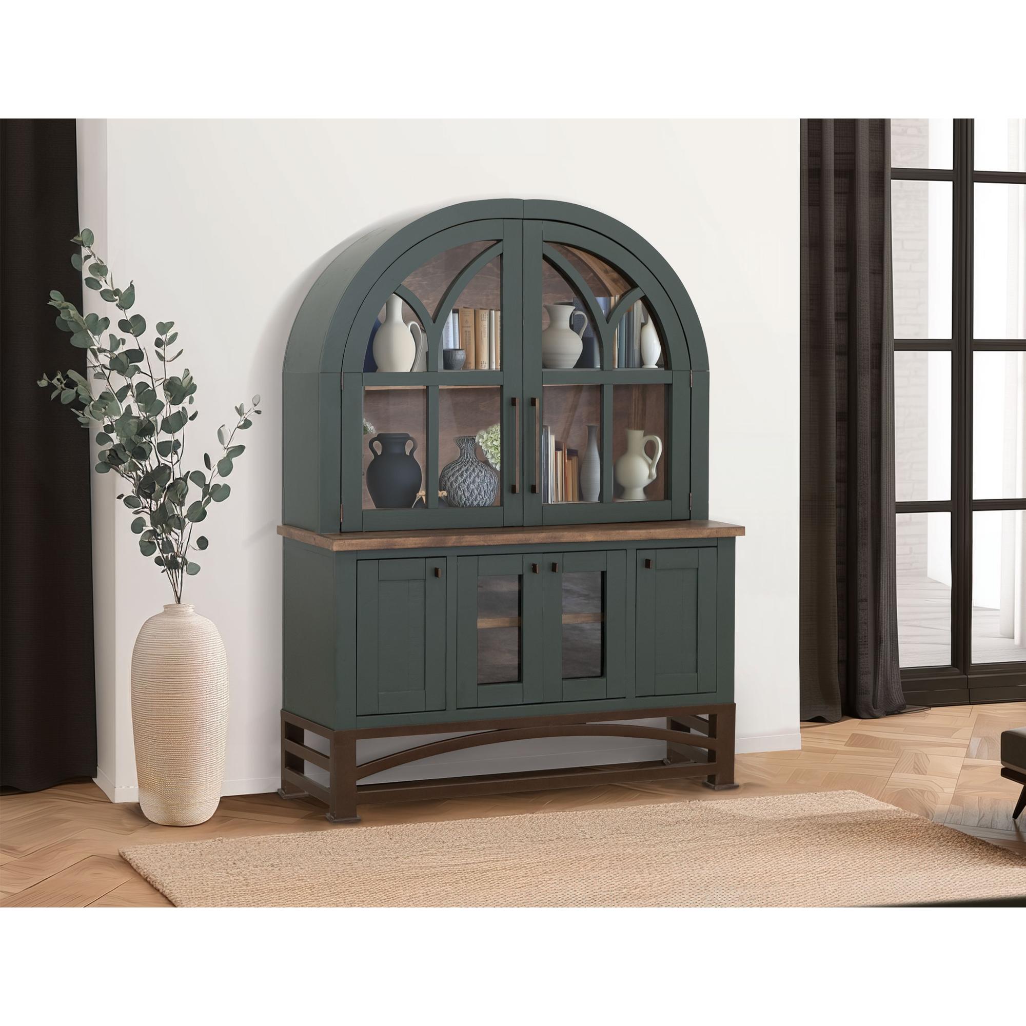 The Obsidian Hutch is a stunning piece of furniture inspired by the elegant designs of mid-18th-century French furniture. It seamlessly combines the timeless allure of old-world charm with the sleek lines of contemporary design, making it a perfect addition to any dining area. Expertly crafted from high-quality solid pine and okume wood, this buffet and hutch feature two stylish arched glass doors, adding a touch of sophistication to your living space.