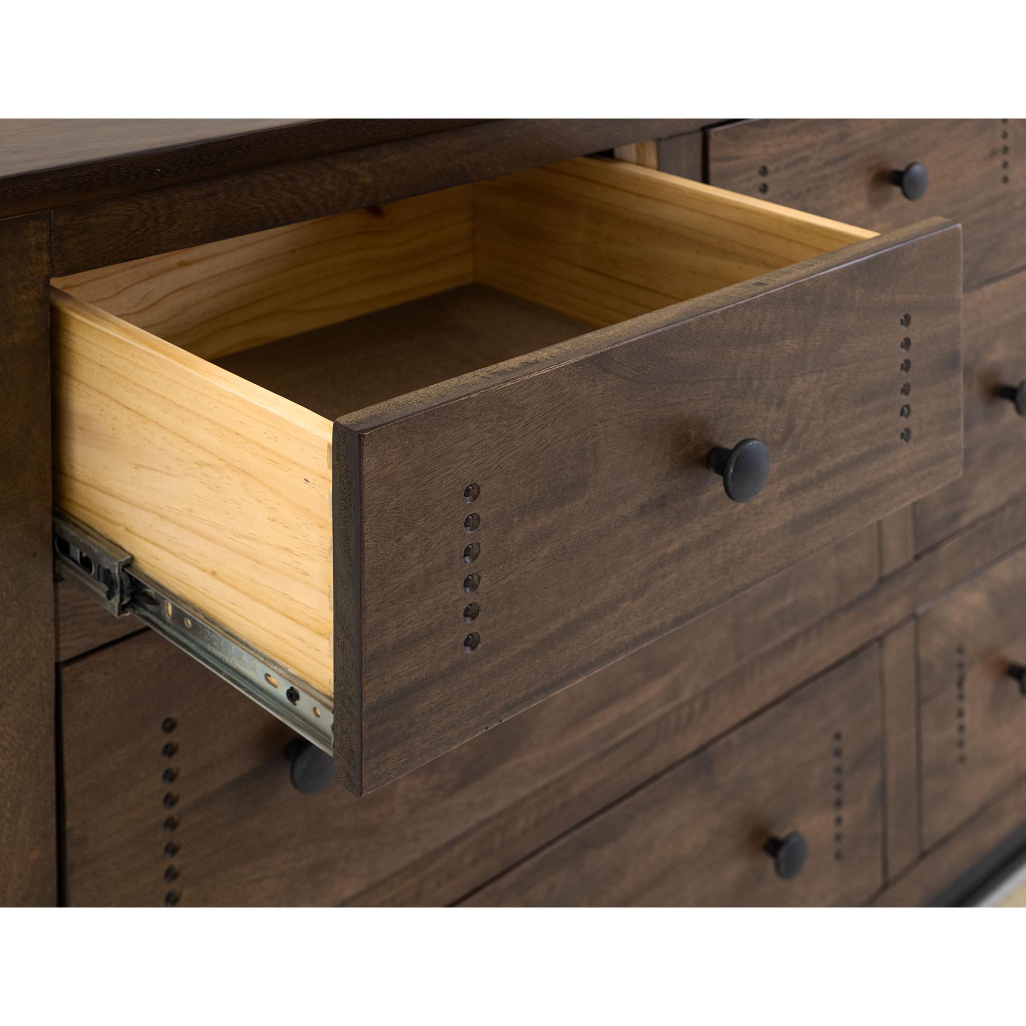 The exceptional Parota III Bedroom Collection showcases the beauty of Parota wood, native to Mexico and South America, It features panels and tops crafted from this stunning wood, incorporating butterfly joints between slabs combined with sustainable mango wood for the rest of the case piece. The translucent multi-step lacquer in brown allows the natural grain of the Parota wood to shine through beautifully. The collection also includes hand-forged iron details on the headboard and mirror, giving each piece a distinctive look. Additionally, the drawer fronts are adorned with decorative nails arranged in two vertical lines on either side of the knob handles. Elevate your bedroom with the unique charm and sustainable craftsmanship of the Parota III Bedroom Collection, where exquisite design meets eco-friendly elegance.