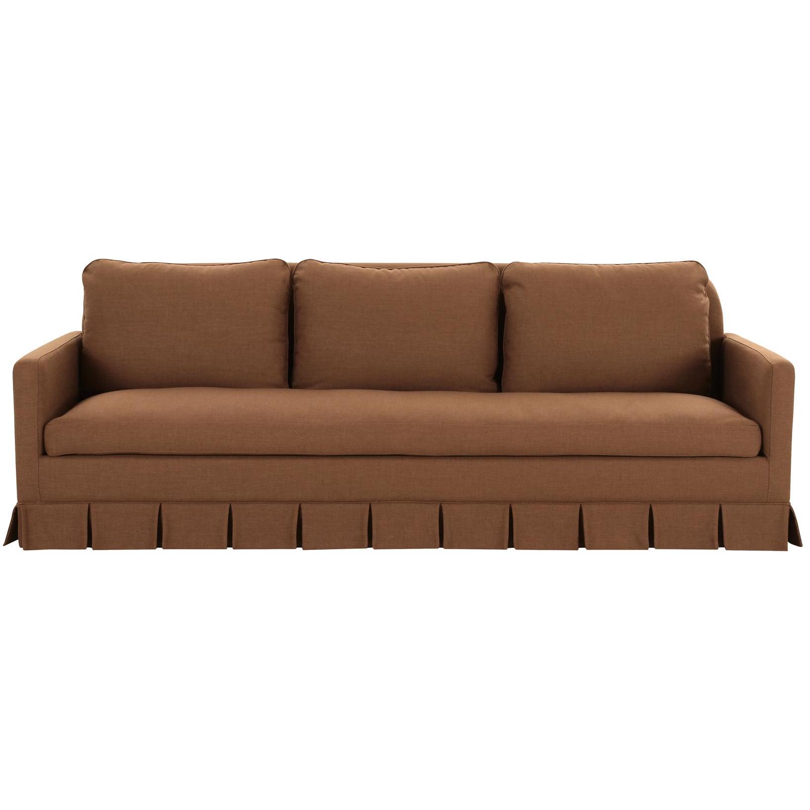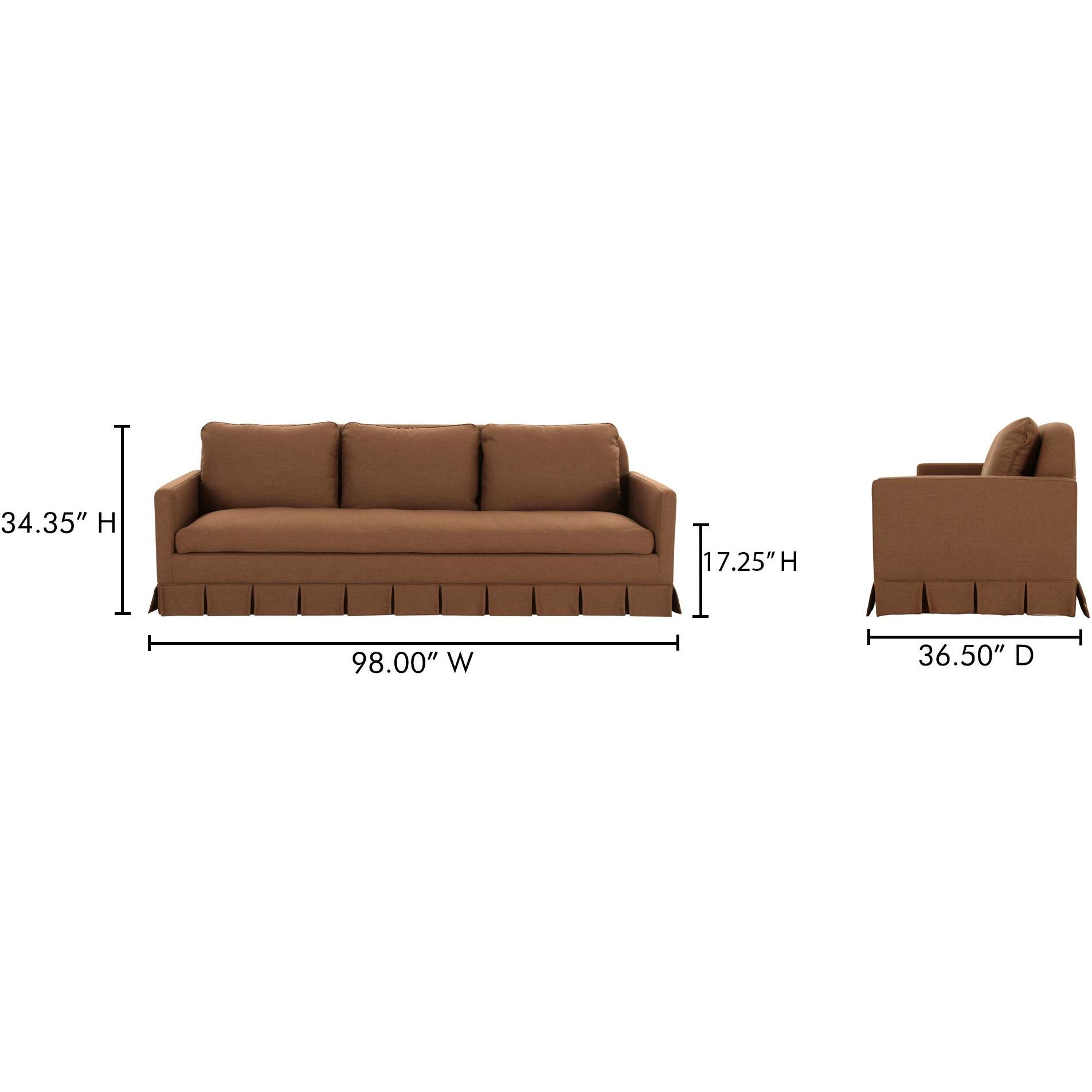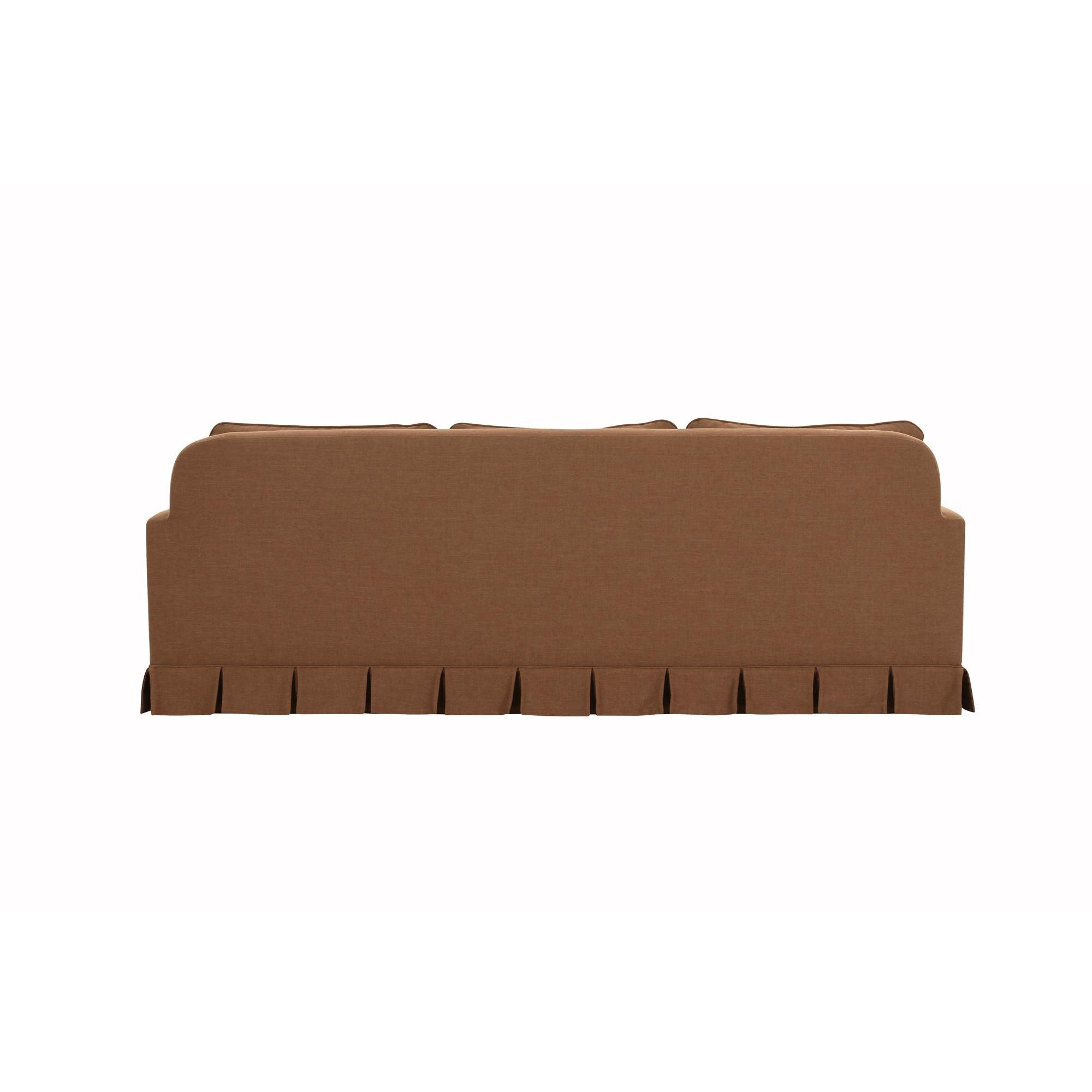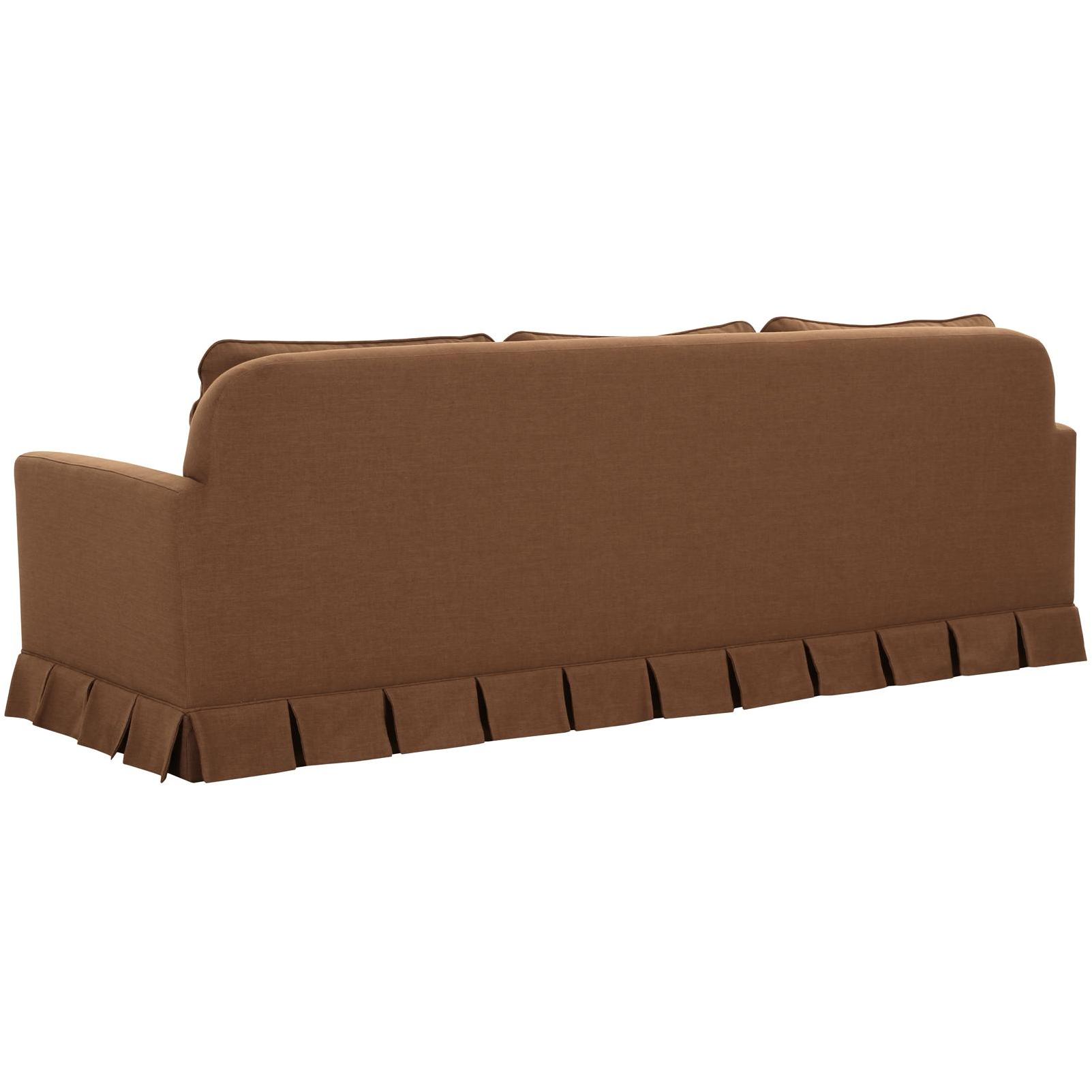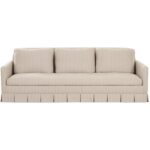 - Box pleat skirt detail, minimal track arm. Back features soft rounded corners