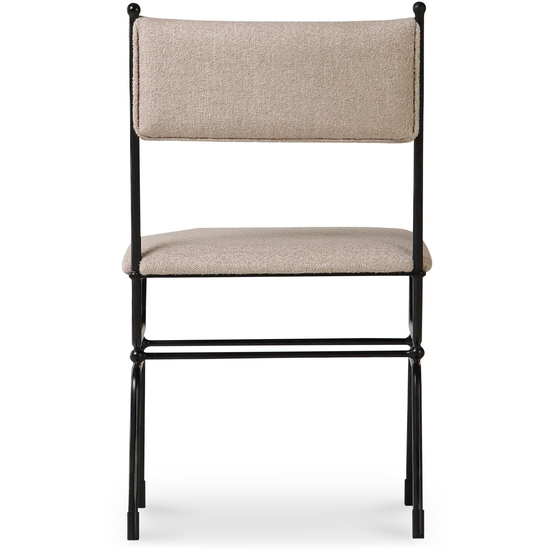 The Posta dining chair is inspired by the historical elegance of Italy’s Posta Vecchia hotel, seamlessly marrying vintage allure with modern comfort. Its robust hammered metal frame underscores distinctive finial details on the back and base, echoing the Italian locale’s enchanting spirit. Upholstered with soft fabric and featuring a curved back, this piece adds plush comfort with a touch of Italian finesse.