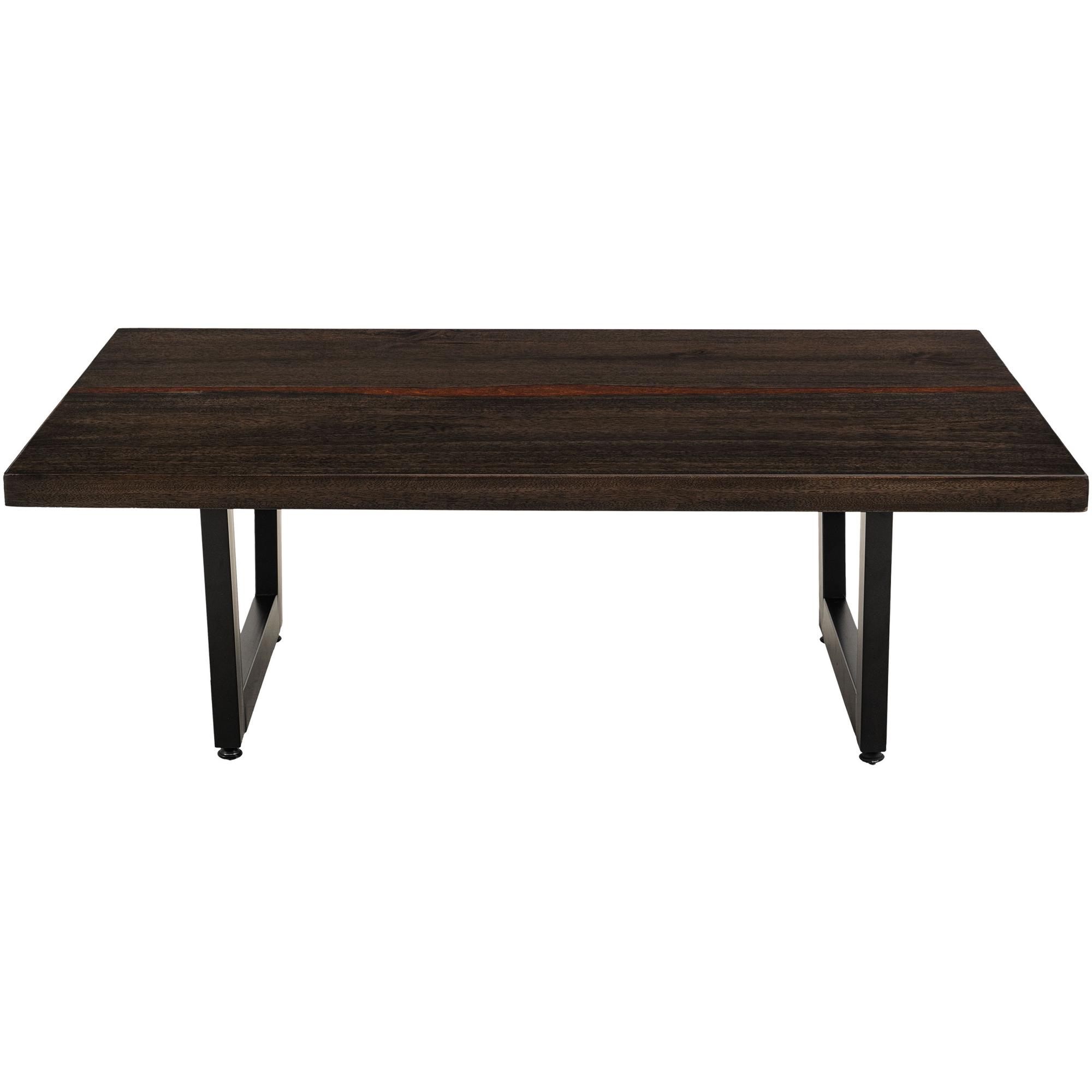 The Raramuri occasional table set is a high-quality addition to any living room, crafted from sustainable mango wood. Each table features a unique natural live-edge top. The tops of both the cocktail and sofa tables are infused with epoxy resin and copper mineral flakes, enhancing their durability and visual appeal. This occasional table set highlights the natural beauty and tonal variations of mango wood. The metal base offers a stable and long-lasting foundation, making these tables ideal for everyday use.