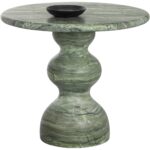 The Raul Bistro Table takes on a sculptural presence with its striking pedestal base, formed from stacked, rounded volumes that recall classical columns. Finished in a marble-look concrete with natural tonal striations, it is an anchor piece that feels timeless yet distinctly modern.