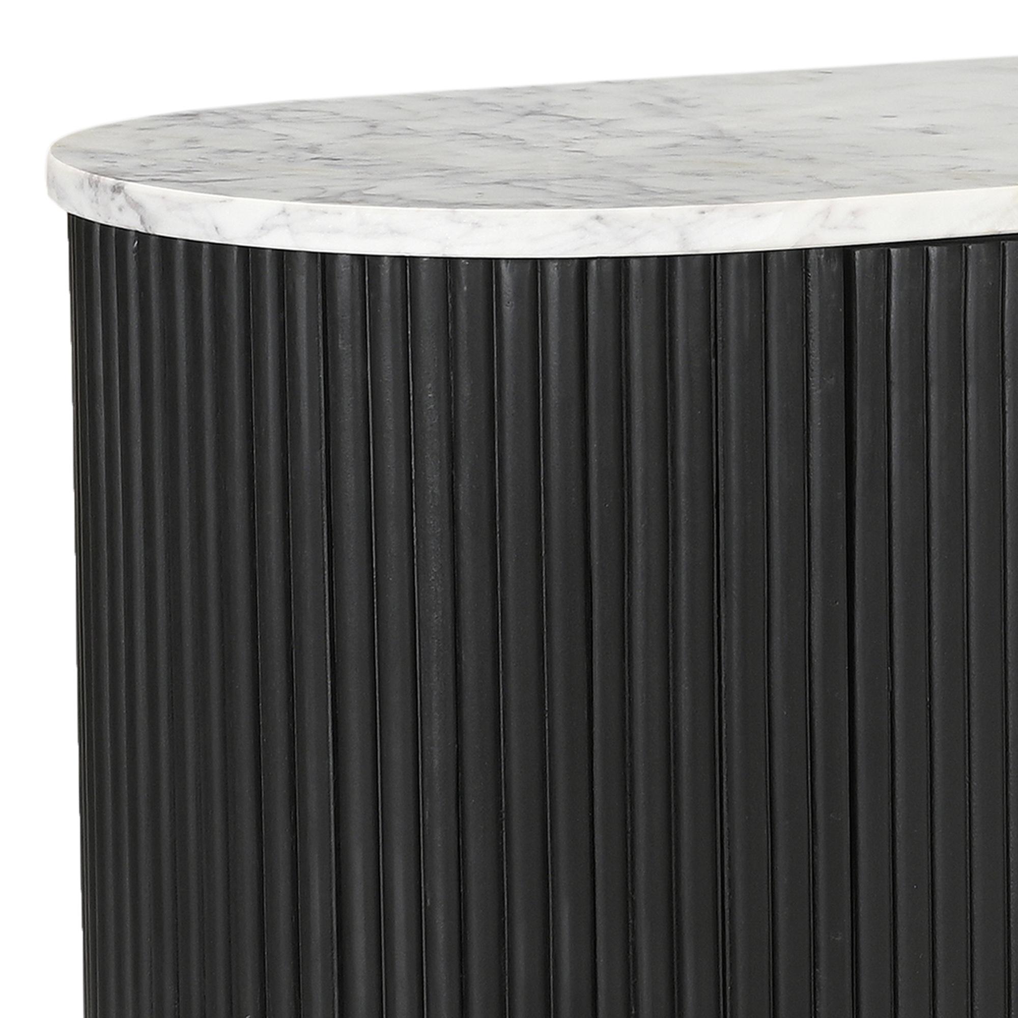- Solid mango wood, reeded design with black finish and black wrought iron legs