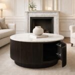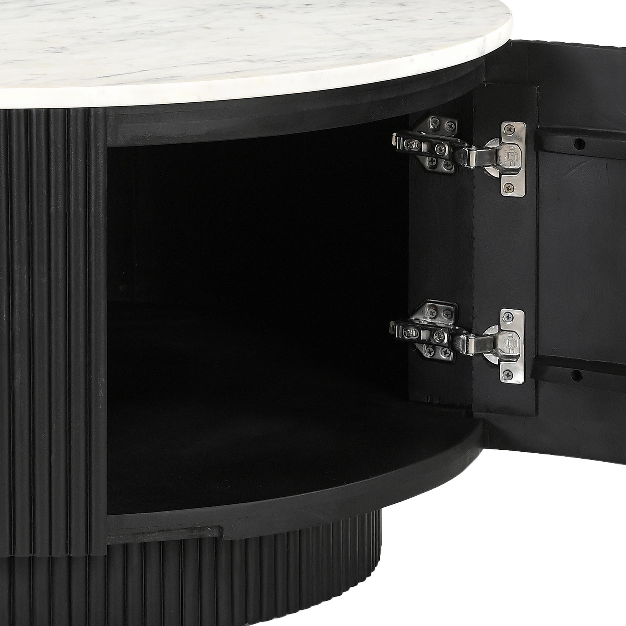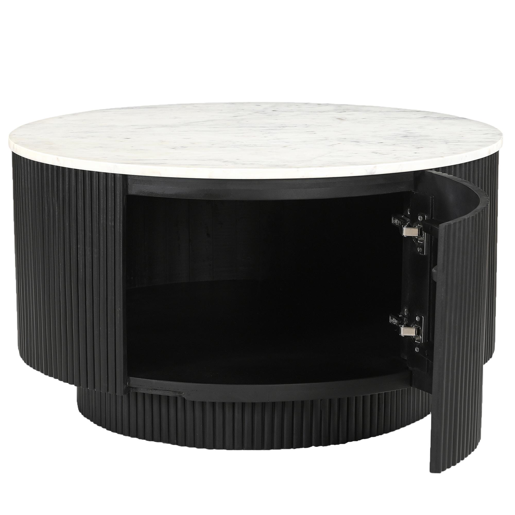 Reyna Round Coffee Table with Storage in Black and White