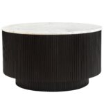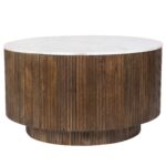- Mid-century modern round coffee table with white marble top