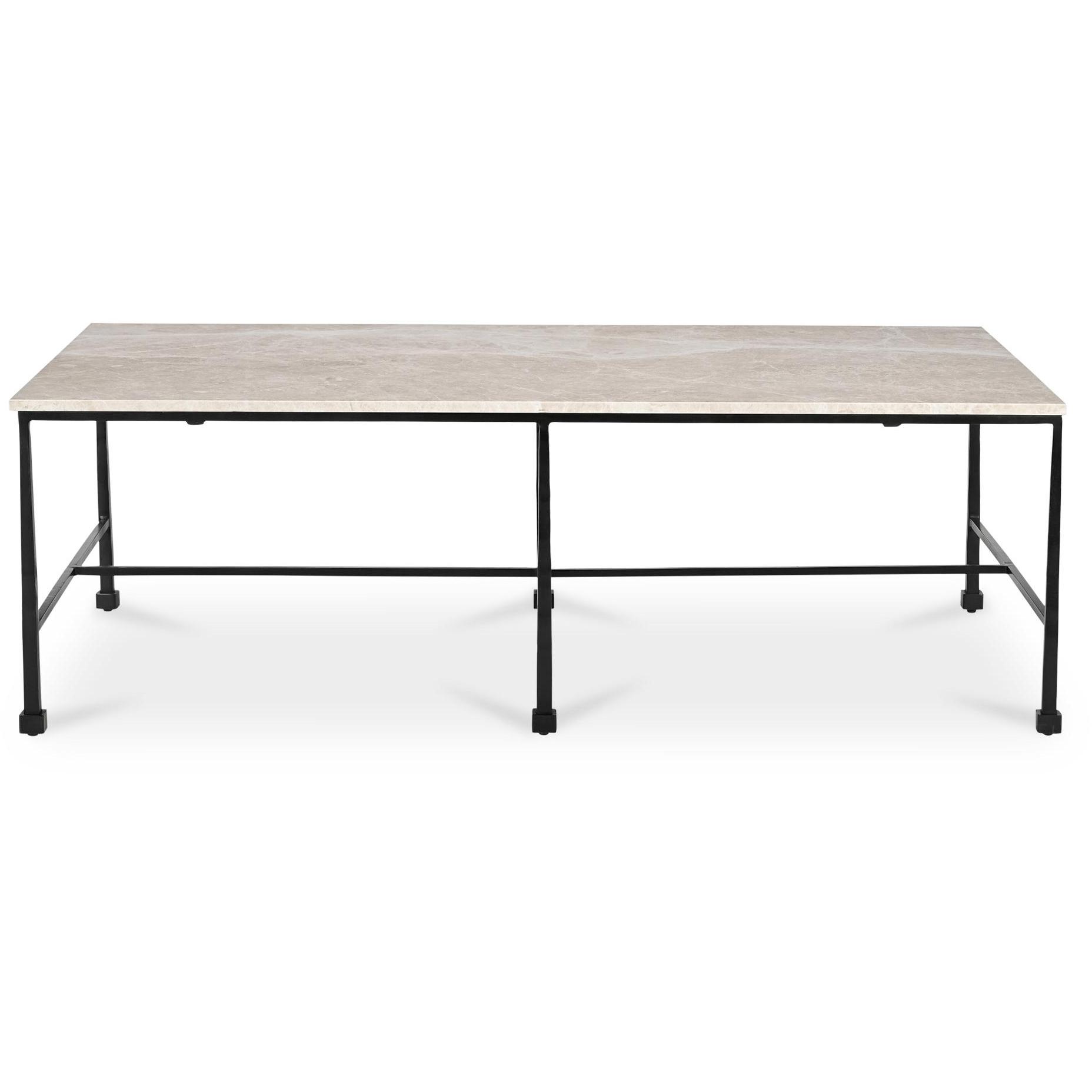 Anchored by a sleek iron base adorned with hammered details, the River coffee table’s square base sculpture detail injects an unmistakable artistic flair that is crowned with a soft Italian Botticino marble top. The striking contrast of textures enhances visual interest that captivates and endures.