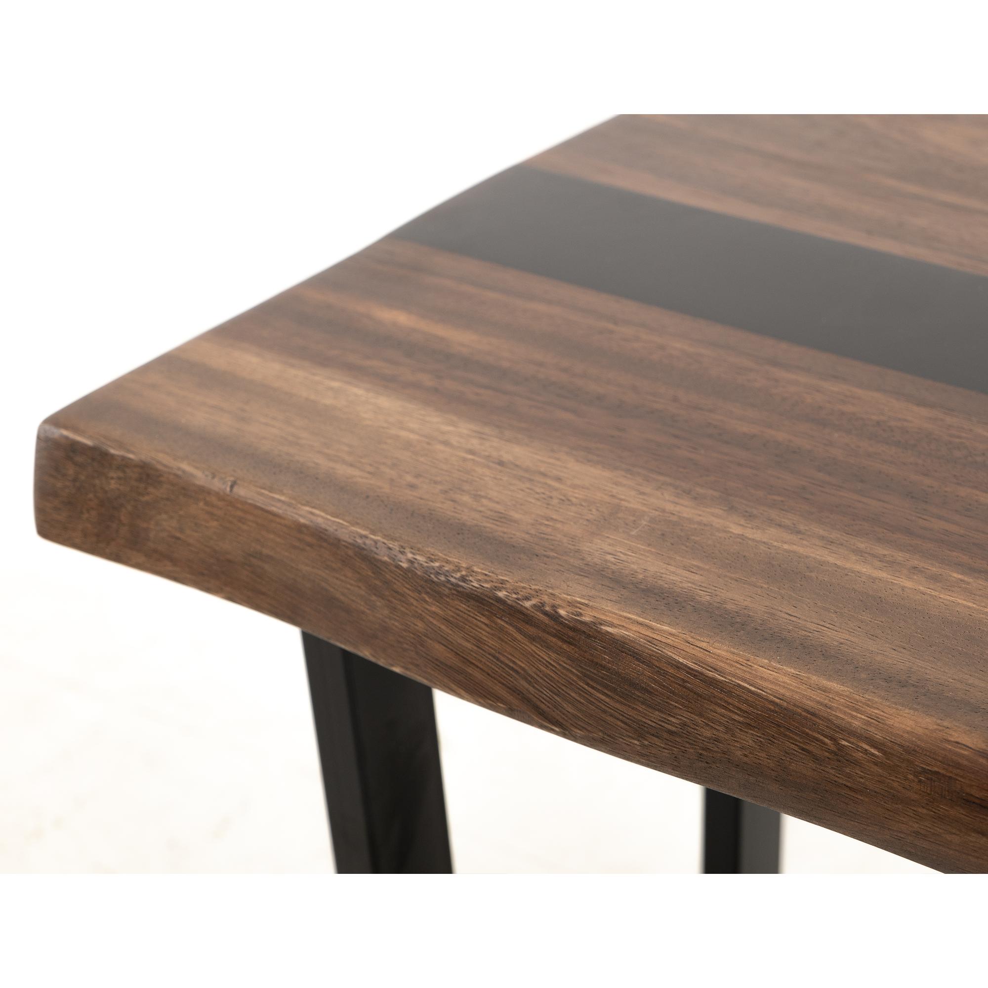 The Riverwood occasional tables, meticulously crafted from beautiful parota wood, are a stunning collection that perfectly blends nature with relaxed modern design. Coffee and Sofa table feature a striking central epoxy resin strip that flows through the wood’s natural live edges, enhancing its organic appeal while adding a modern flair. The metal legs feature a black matte powder coating that enhances durability and resists corrosion, providing a stable and long-lasting foundation. This makes these tables ideal for everyday use.