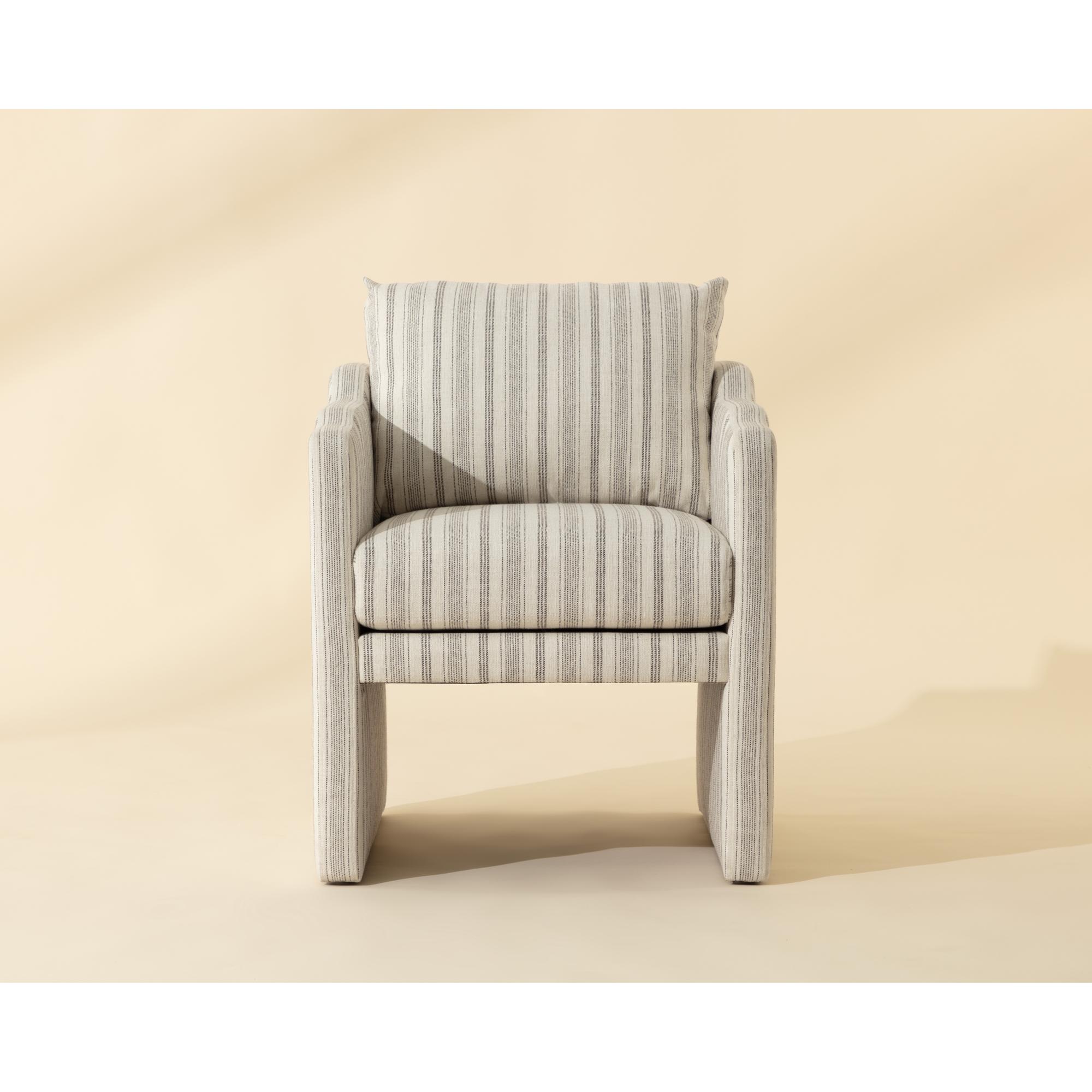 With classically cool lines, the Scala Dining Armchair is sharp but smooth in all the right places. Fully upholstered in gifford script fabric, this sublime dining chair offers a modern take on tone and texture with contemporary edge.