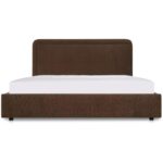 A bed with a hidden trick. The Simon Bed features a rounded silhouette with piped detailing, upholstered in brown polyester for warmth and durability. The full footboard pulls forward to reveal storage divided into two panels, keeping essentials organized without clutter. Built with engineered wood, solid wood, and MDF, Simon turns practical storage into part of the design story.