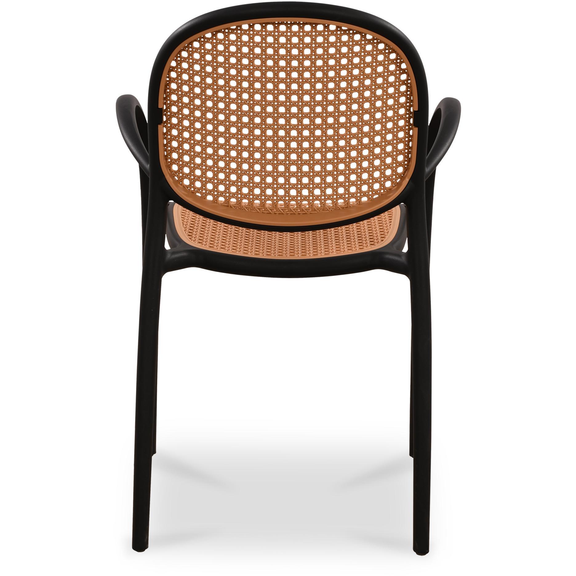 The Soren dining chair marries form and function in understated elegance. Crafted from durable polypropylene, its intricately woven seat and back create a visual tapestry. Stackable and weather-resistant, these chairs effortlessly adapt to alfresco living with refined simplicity. Set of two.