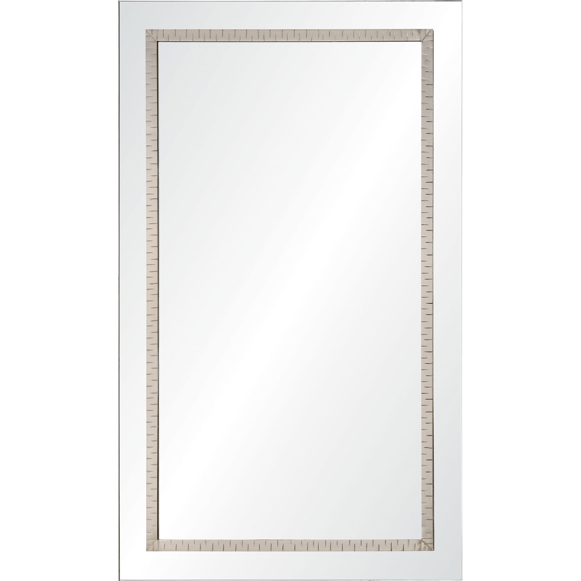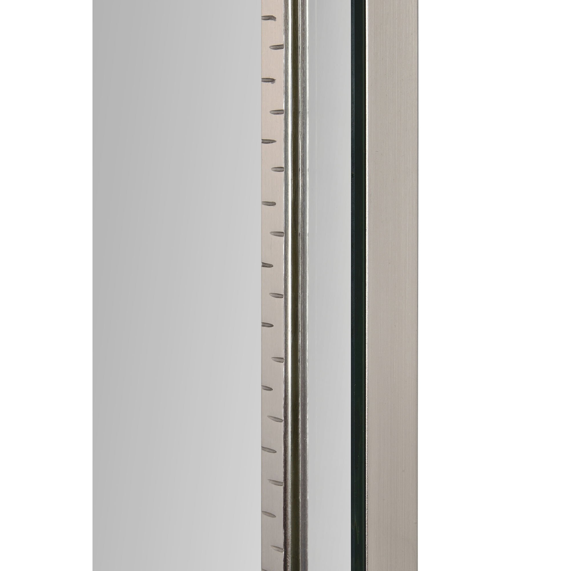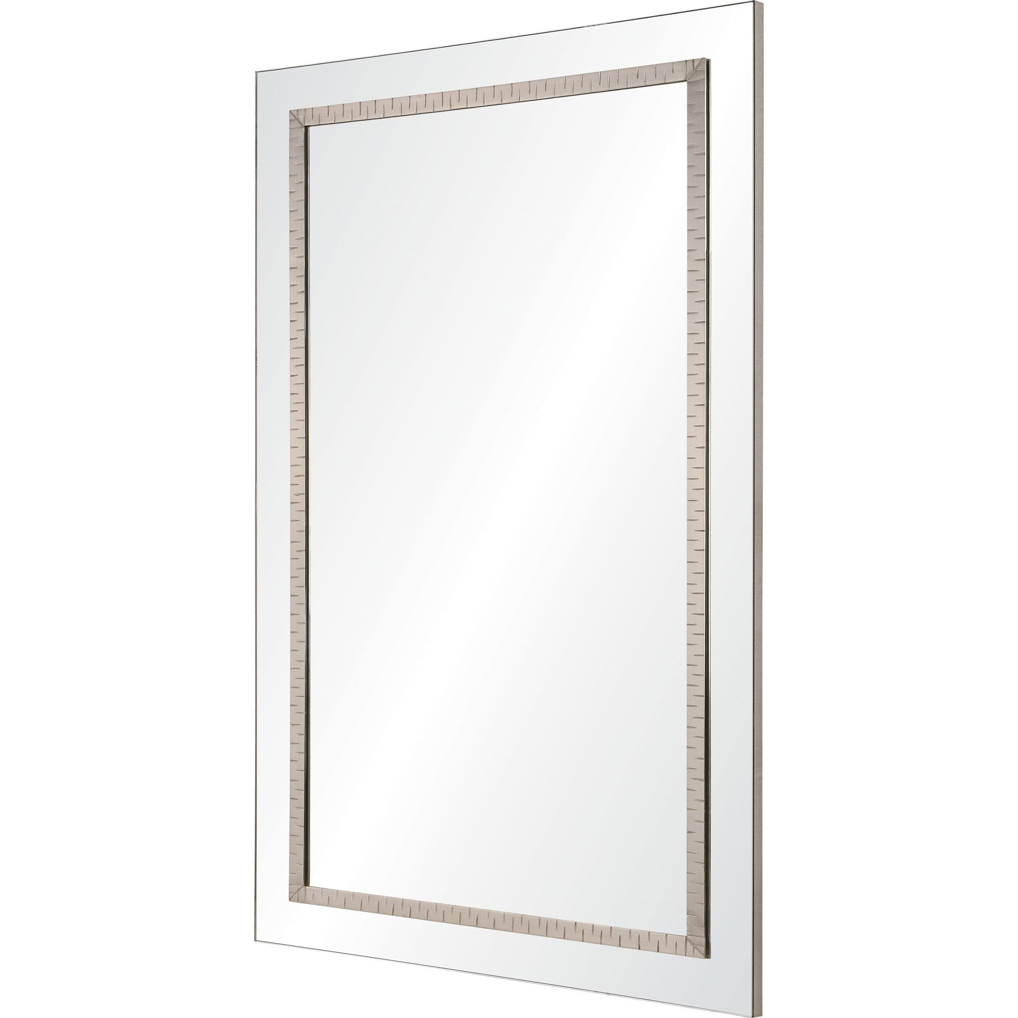 The Stanton Mirror features a sophisticated ribbed metal inlay with a stunning satin nickel finish.