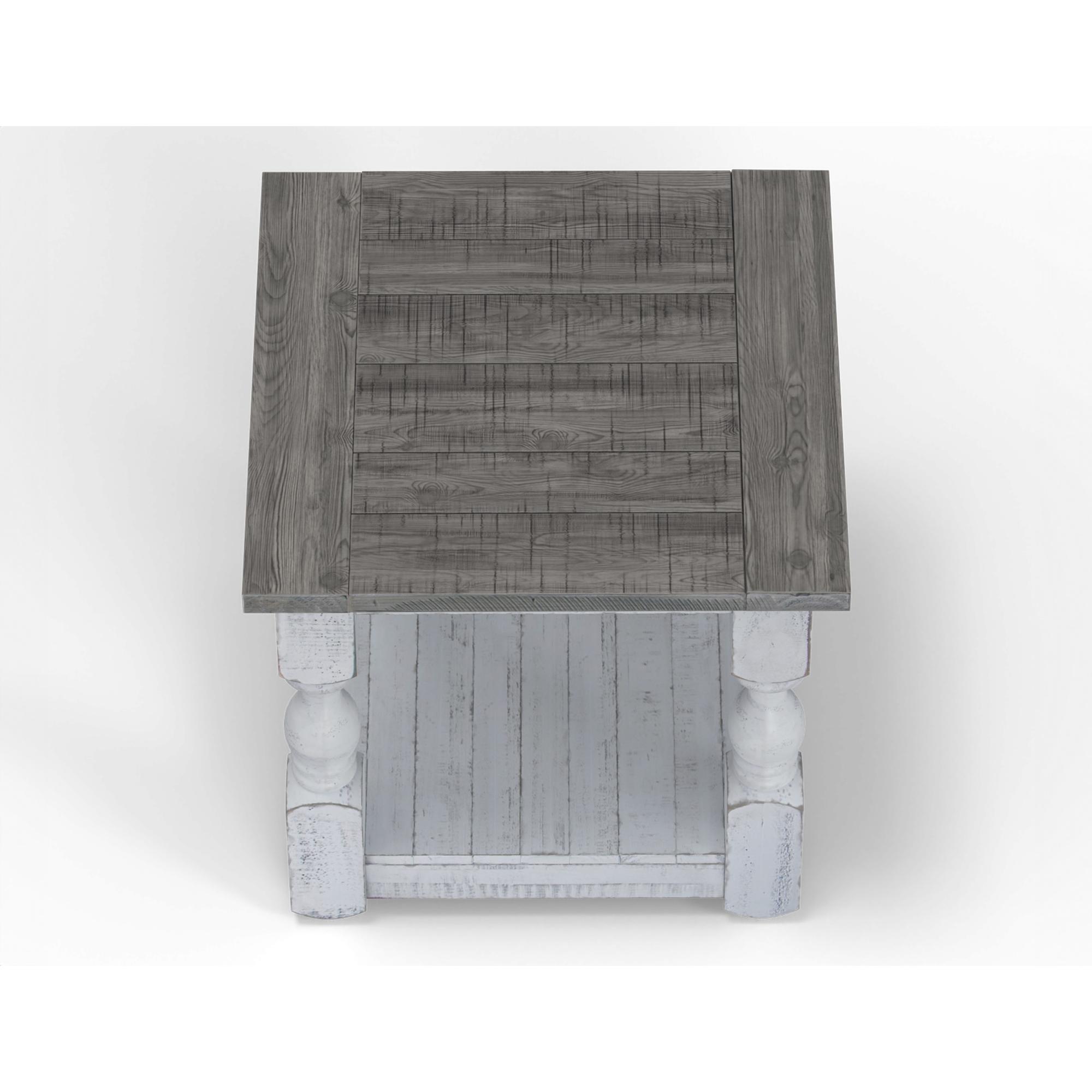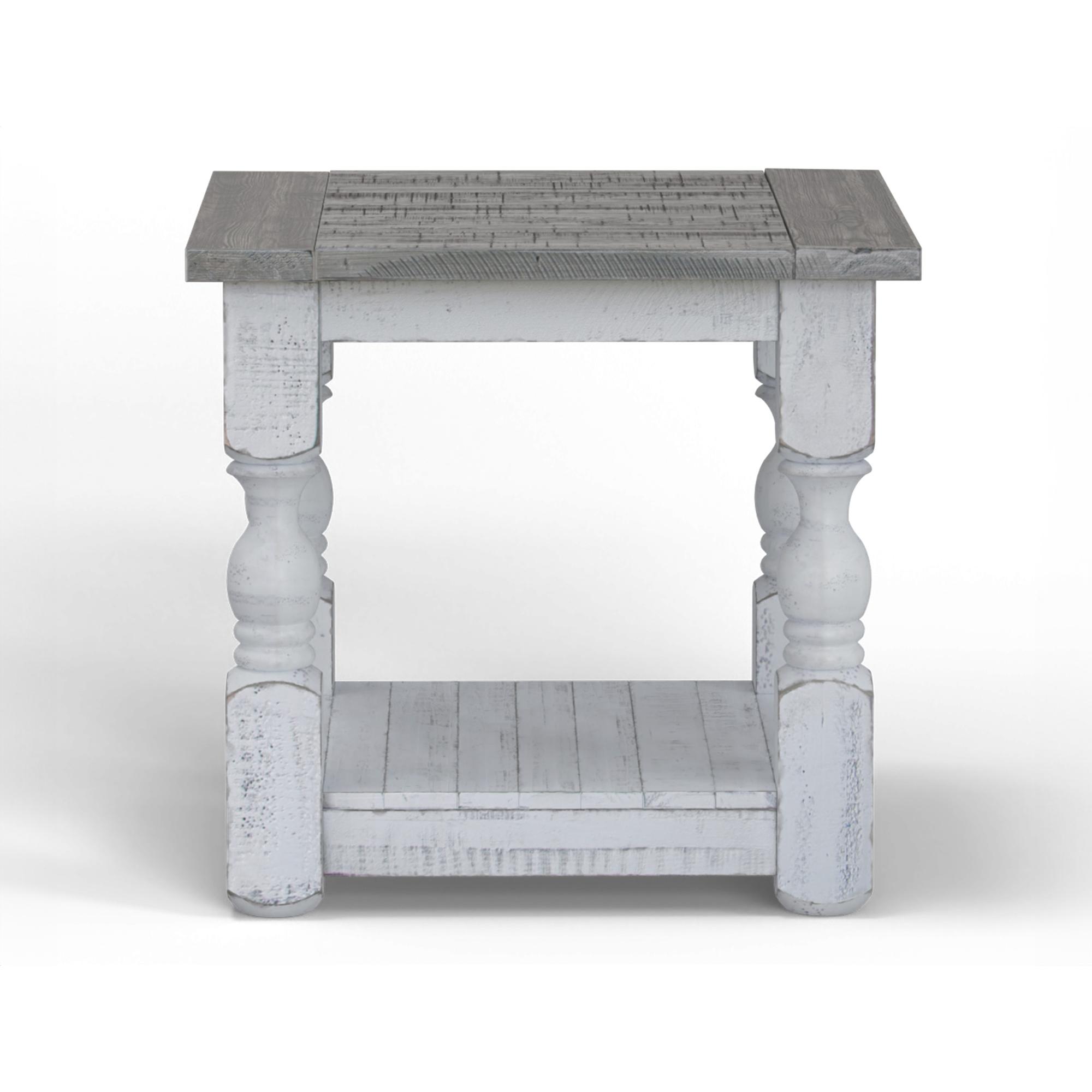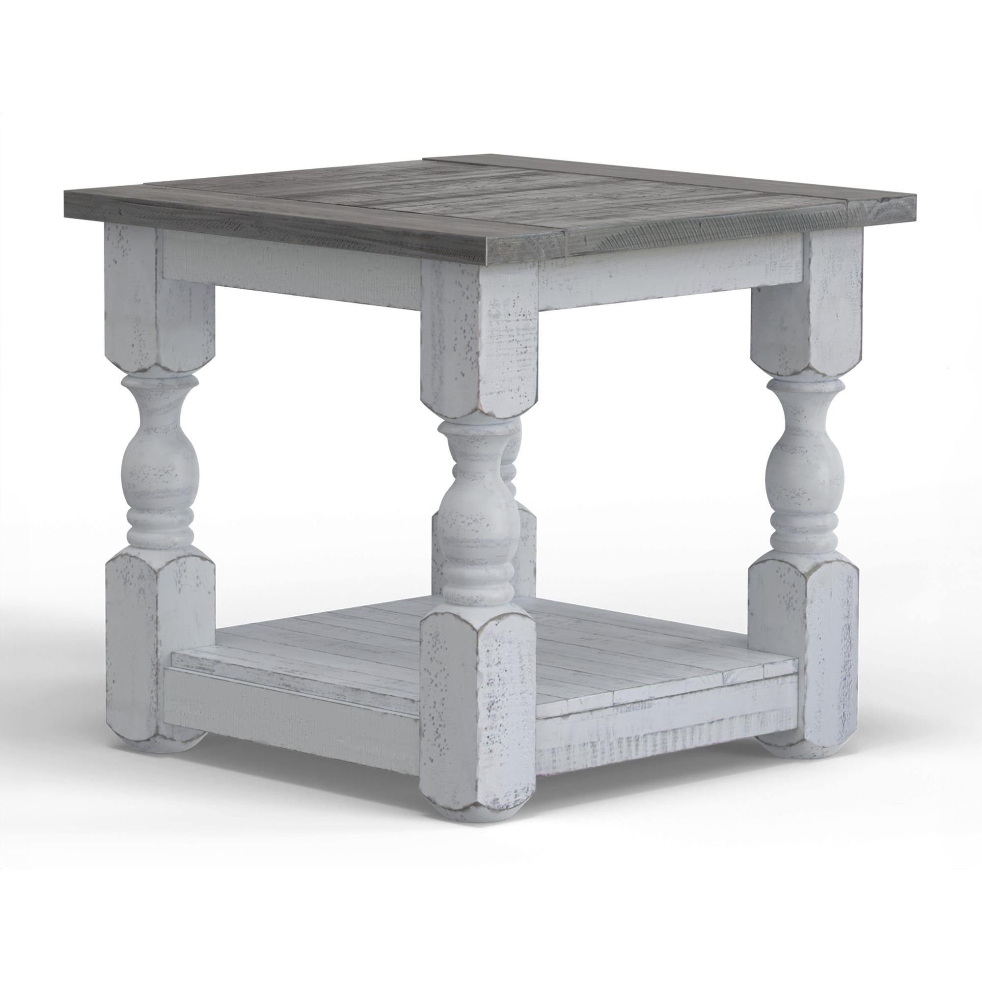 Exuding farmhouse chic with just the right touch of old-world charm, the Stone Collection is meticulously crafted from solid pine wood. The wood is lightly distressed, showcasing a white finish and complemented by weathered gray tops.