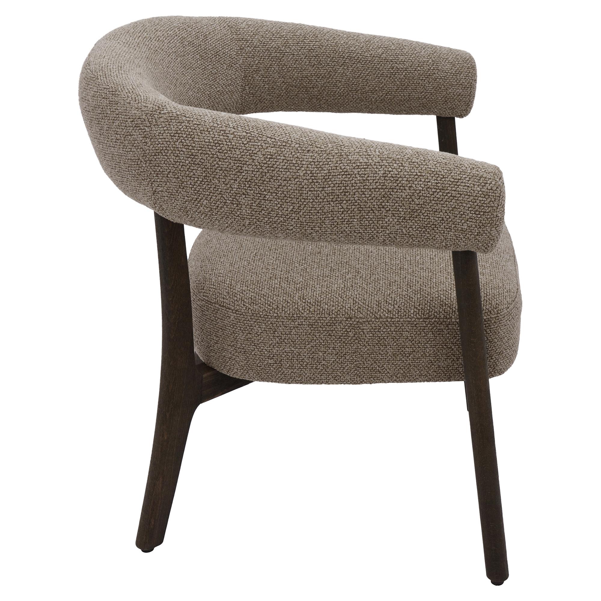 The search for the perfect side chair ends here! This inviting armchair has a plush, comfy seat cushion and wrap around arms that will provide support for hours. Beautiful, clean-lines and neutral colours will allow for an easy fit any décor. Great as a bedroom chair, or conversation chairs in the living room.