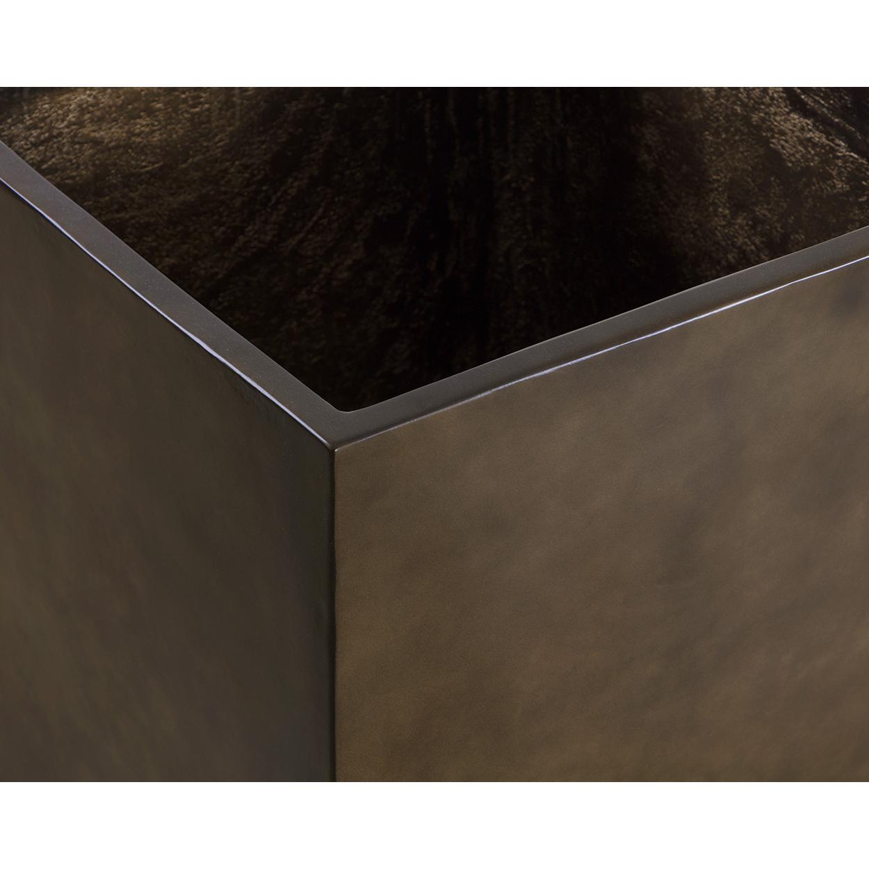 The contemporary form of the square Tansy Planter allows for a lush display of botanicals that will complement any decor. Constructed from glass fibre-reinforced concrete for increased durability with a protective sealant finish that allows it to withstand the elements. Designed with an antique bronze finish with an alluring sheen, this beautiful planter will be a welcome addition to large spaces such as hotel lobbies or building entrances. Includes holes for drainage, one step, and a removable shelf insert. Suitable for indoor and outdoor covered spaces.