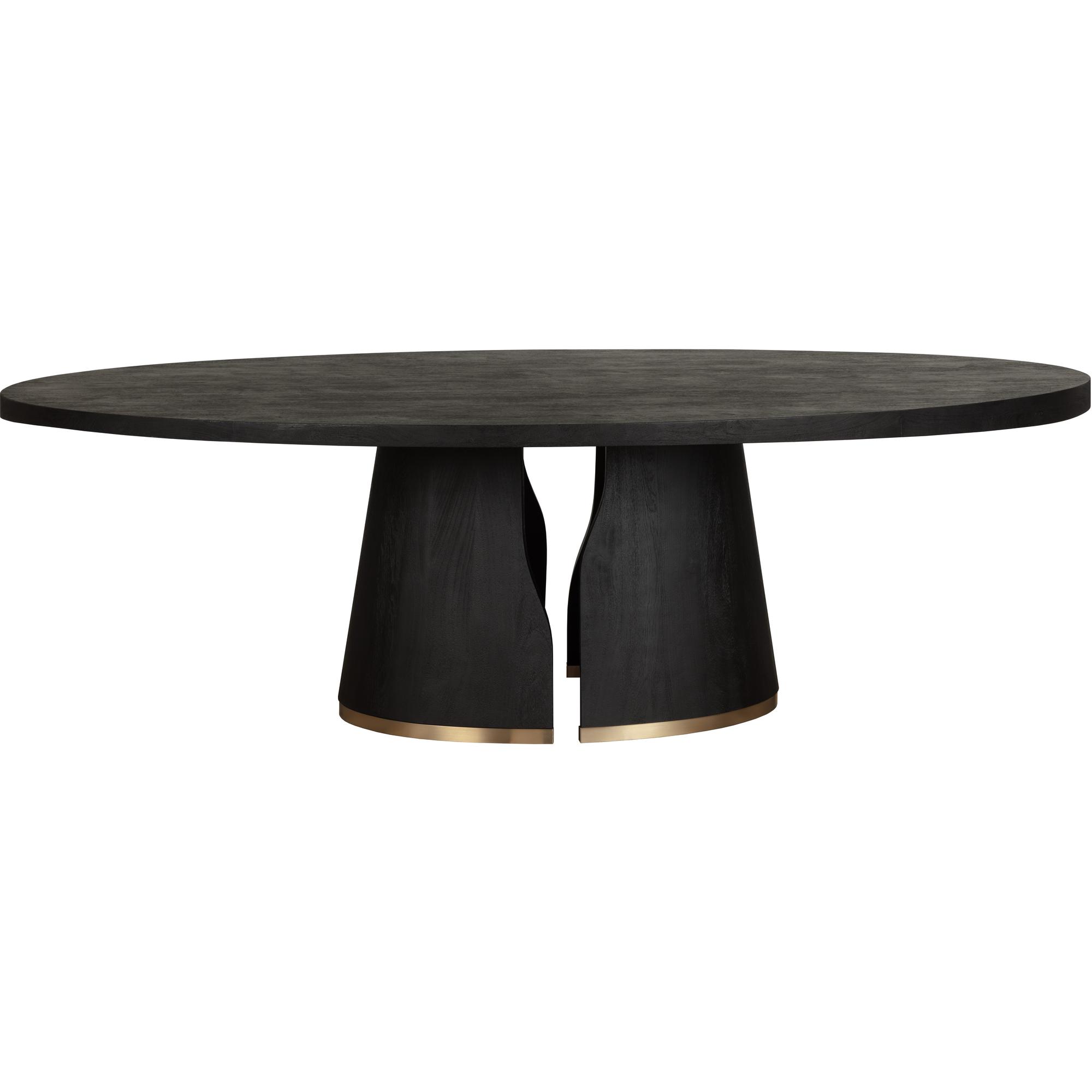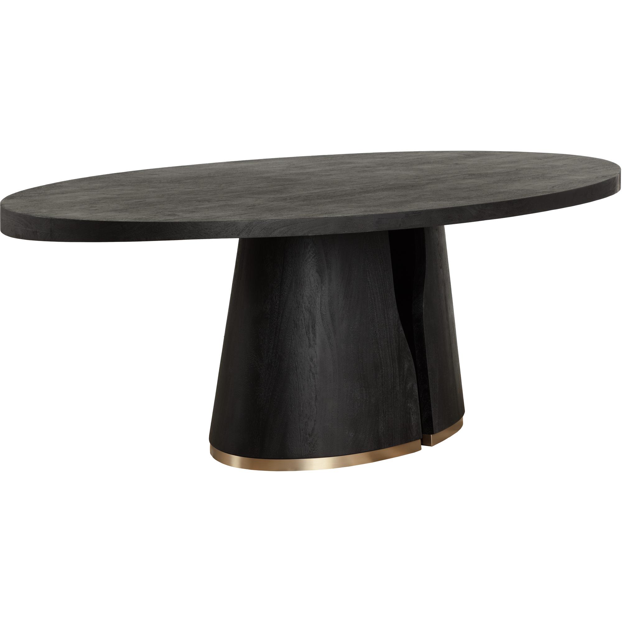 The Tasmin Dining Table brings sculptural elegance to modern dining spaces. Crafted from solid acacia wood, its dual pedestal base draws the eye with softly flared silhouettes. A brushed gold trim along the base offers a subtle hint of glamour.