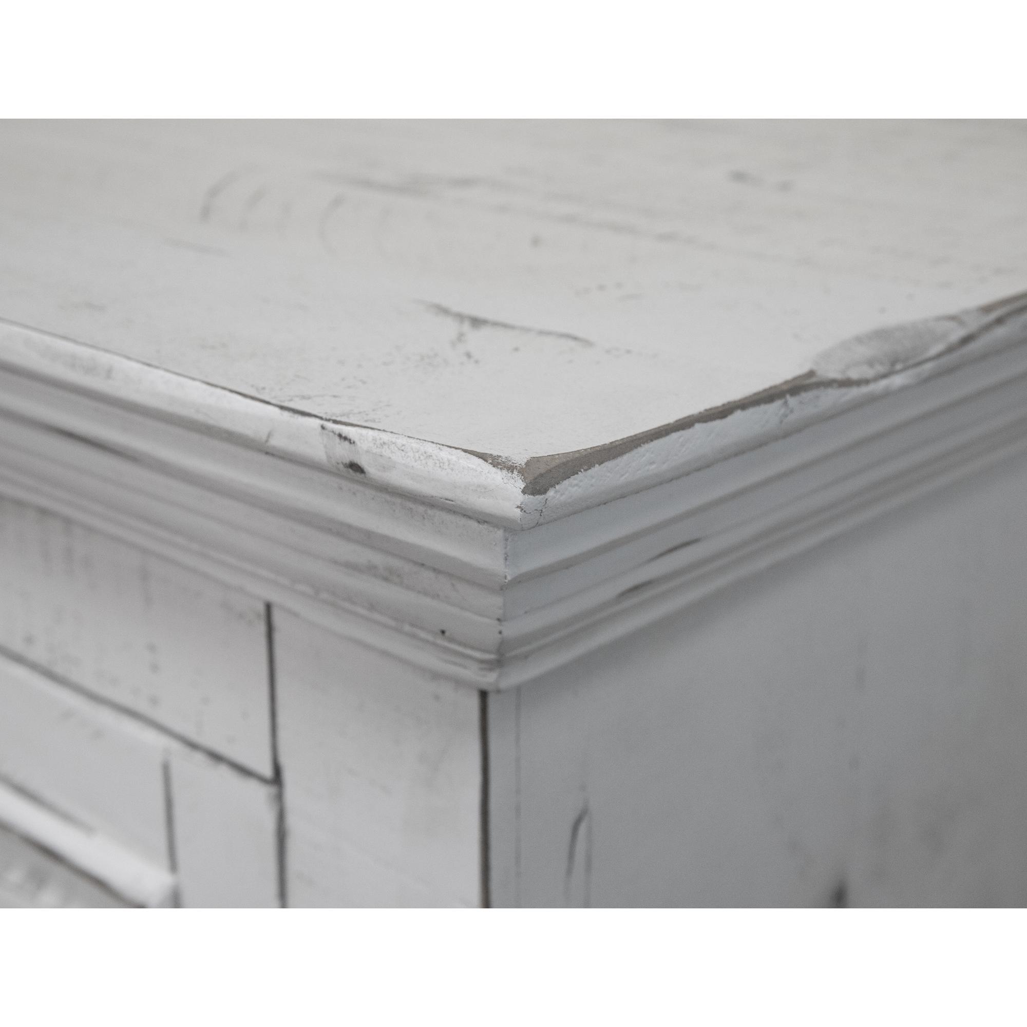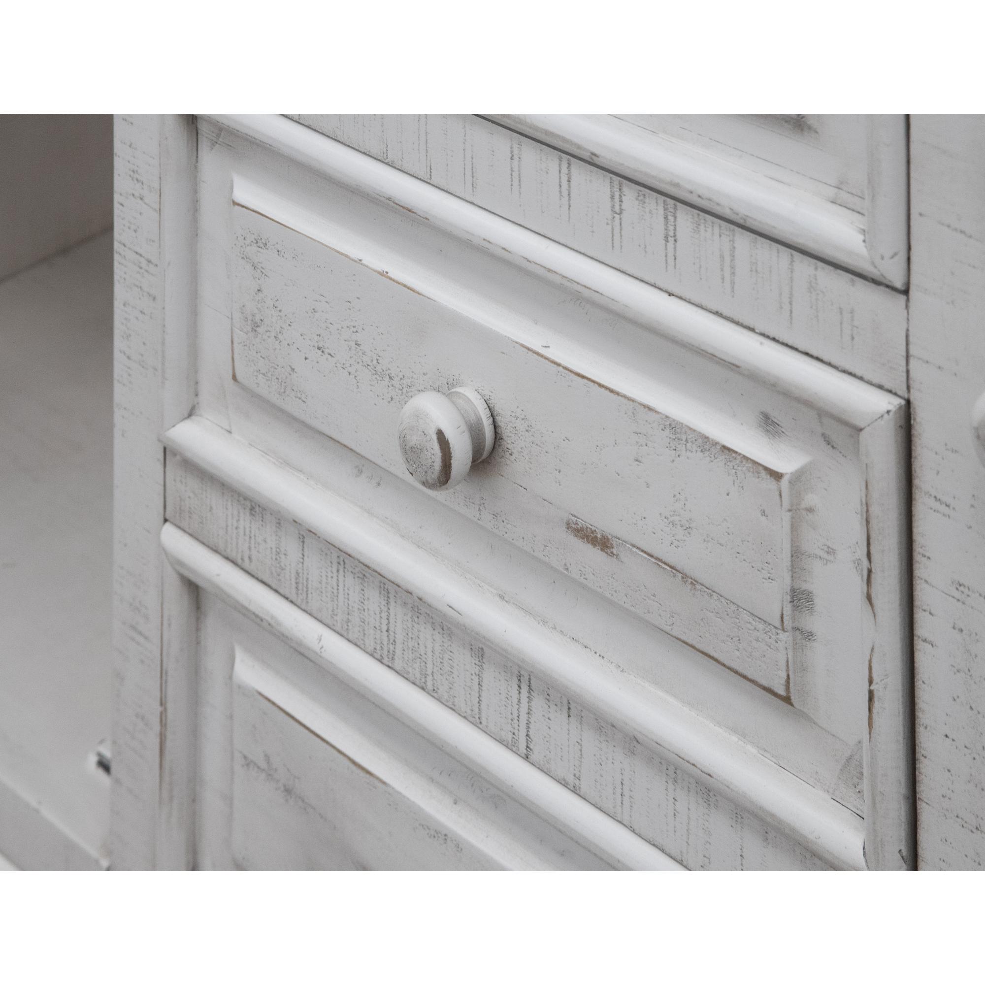 Drawing inspiration from transitional design, the Terra White collection embodies the effortless elegance of its clean, sturdy shapes and the charming rustic grain of solid pine wood. With a tasteful white distressed finish, this collection represents a harmonious fusion of modern and traditional elements, making it a timeless addition to your home.