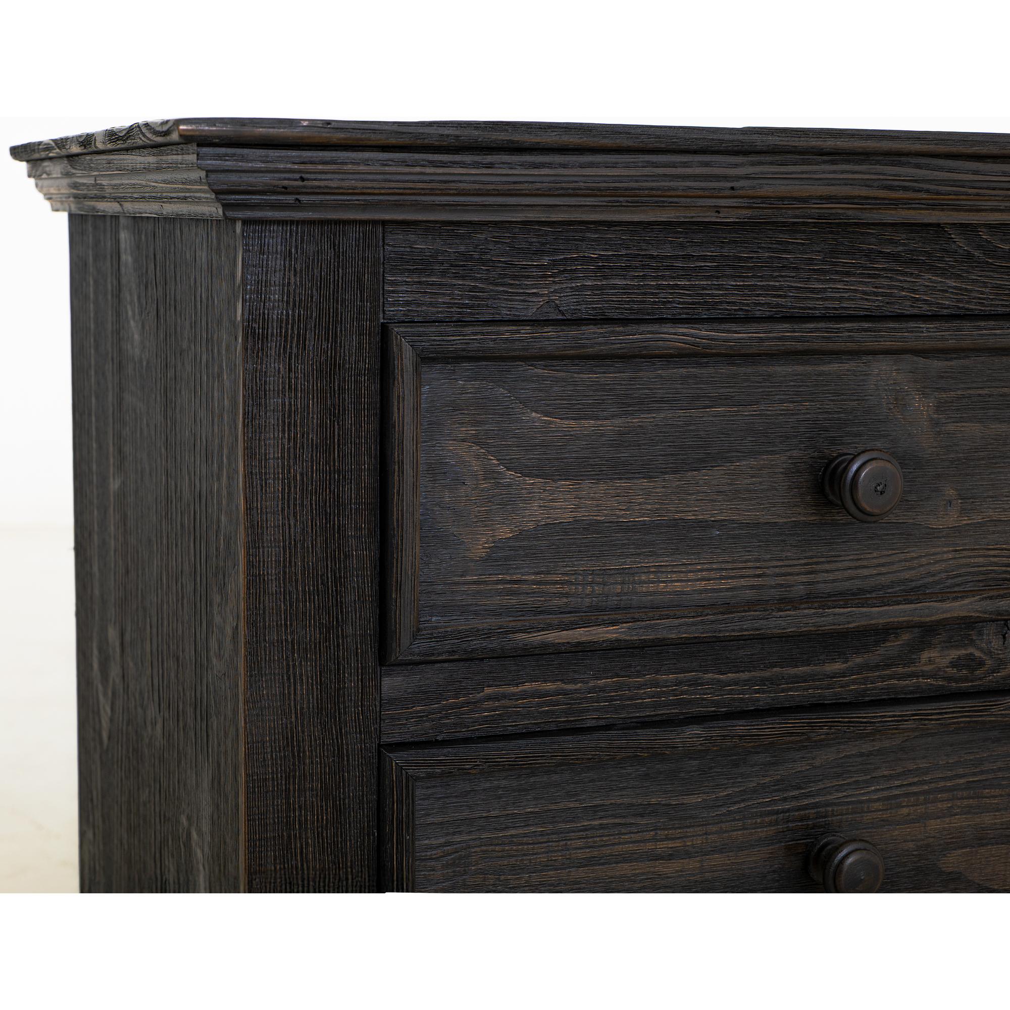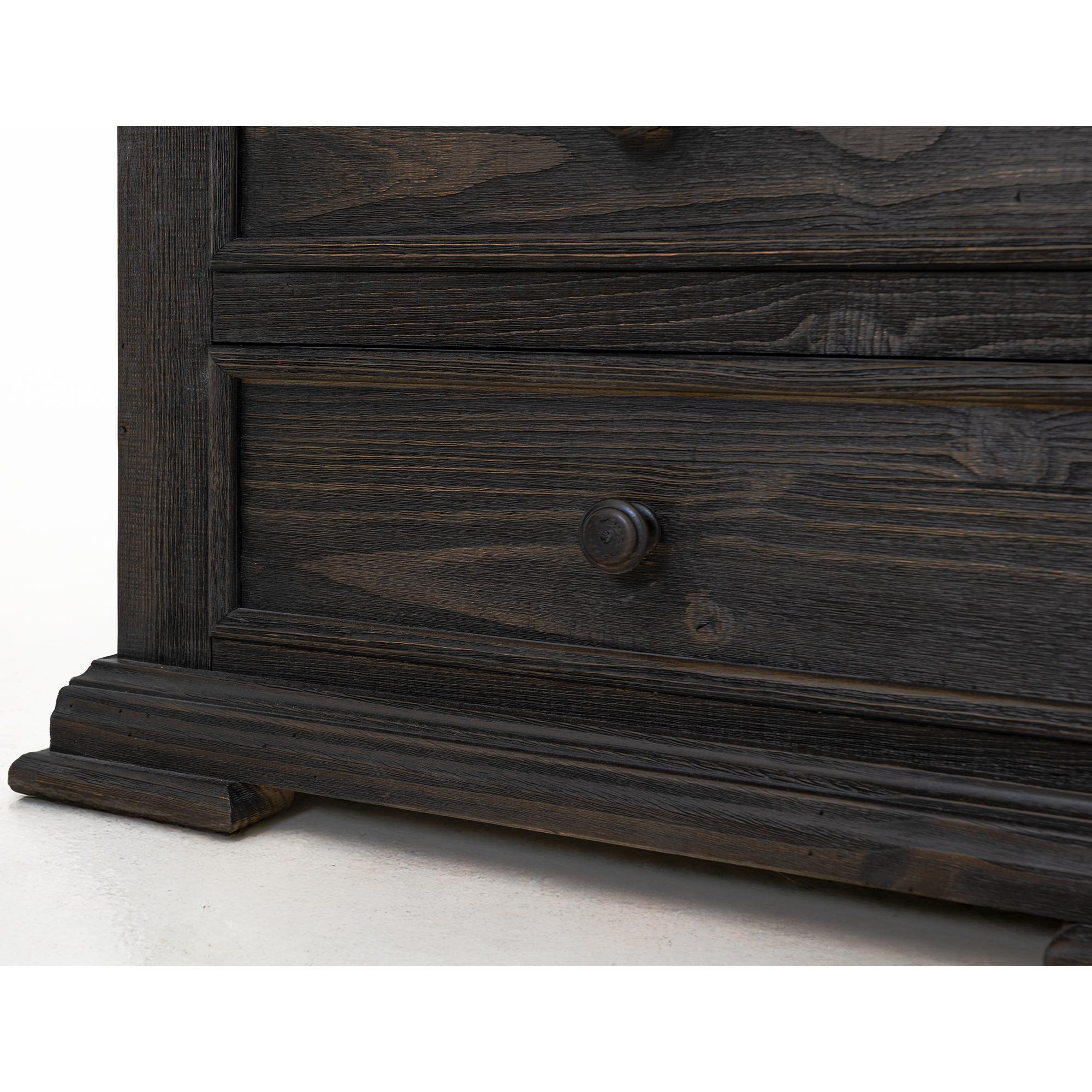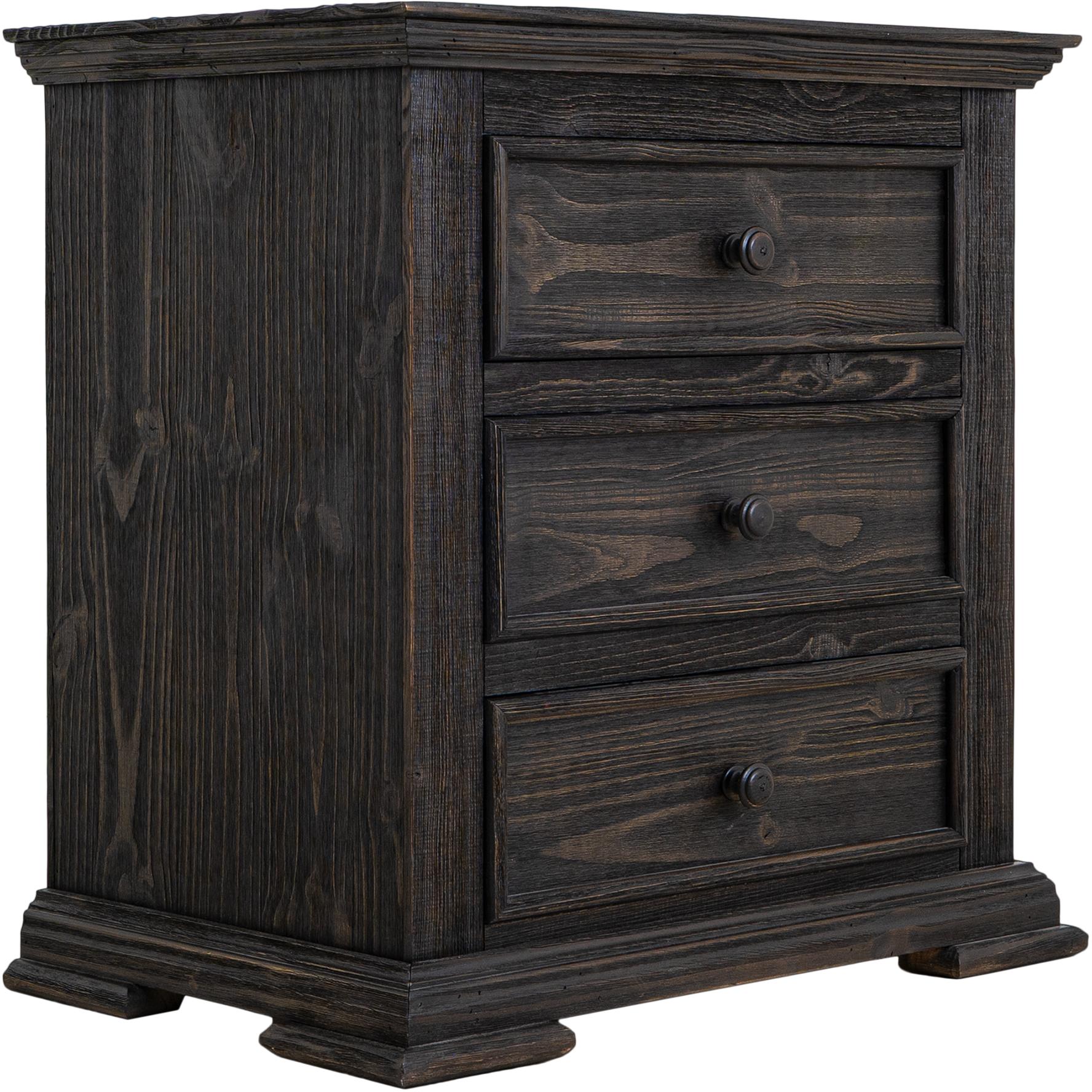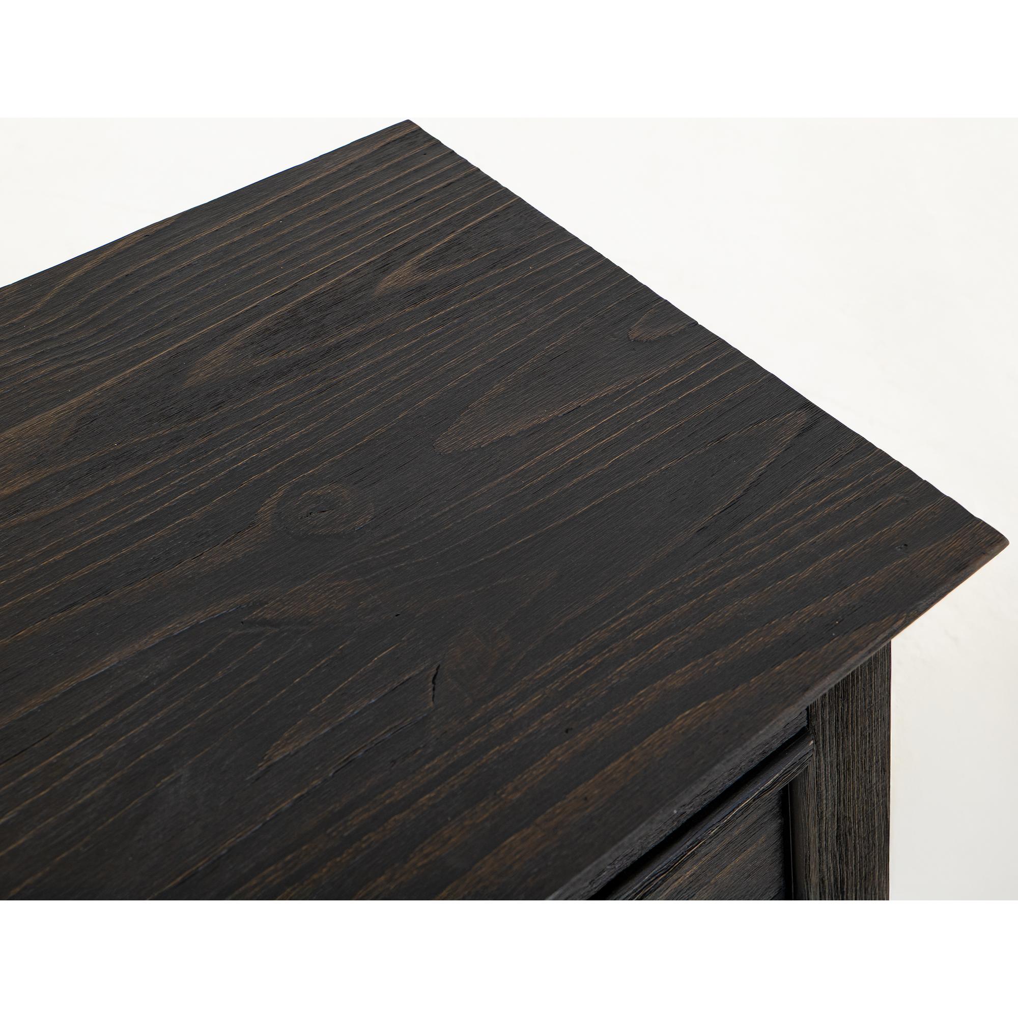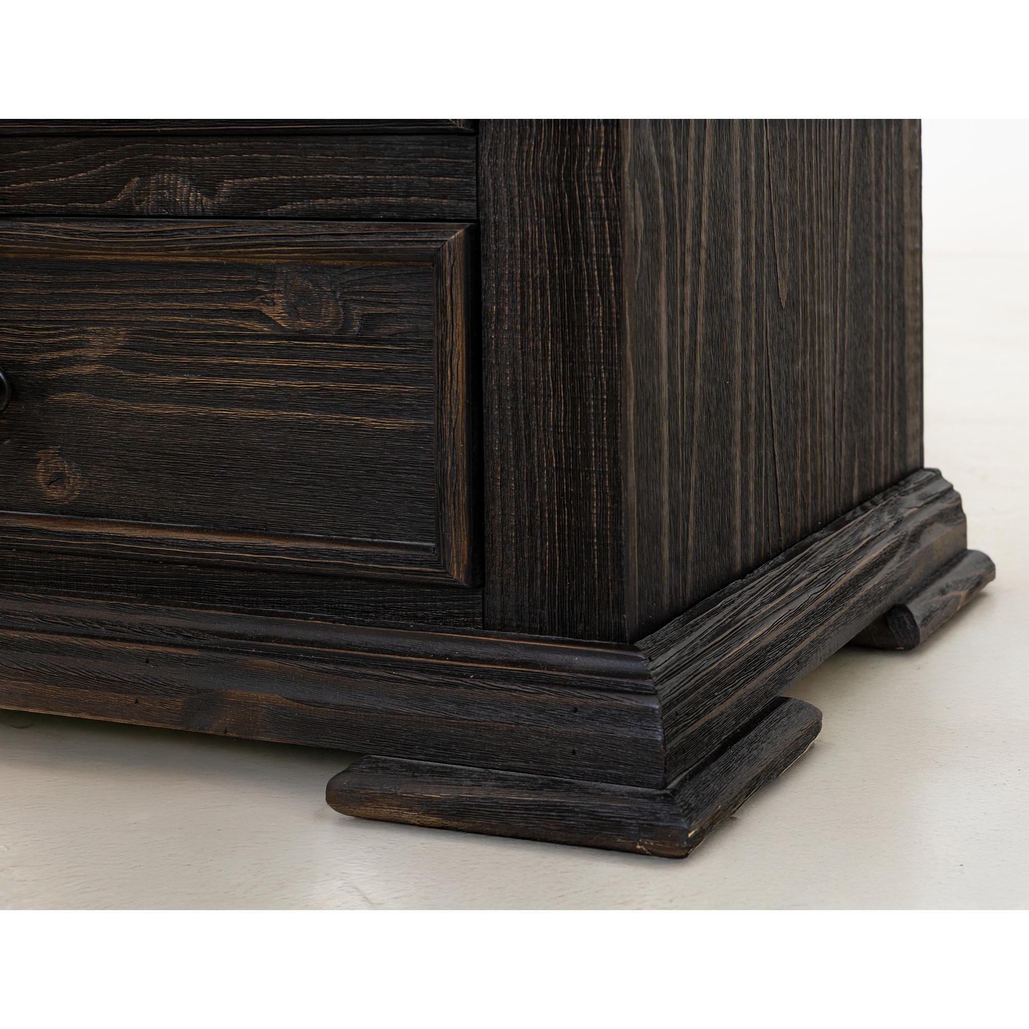 Introducing The Terra Dark, the latest addition to our best-selling collection, featuring a rich hue that adds elegance to any space. Inspired by transitional design, this collection showcases the effortless sophistication of clean, sturdy shapes and molded panels while beautifully highlighting the grain of solid pine wood. Our artisans apply a unique multi-step lacquer with a translucent black finish to each piece. This collection represents a harmonious blend of modern and traditional elements, making it a timeless addition to your home. The Terra Dark Dresser offers a stylish and functional storage solution. Designed for durability and elegance, this piece features three drawers that provide ample storage space, along with custom metal pulls that add a unique character. Its sophisticated look beautifully complements various interior styles.