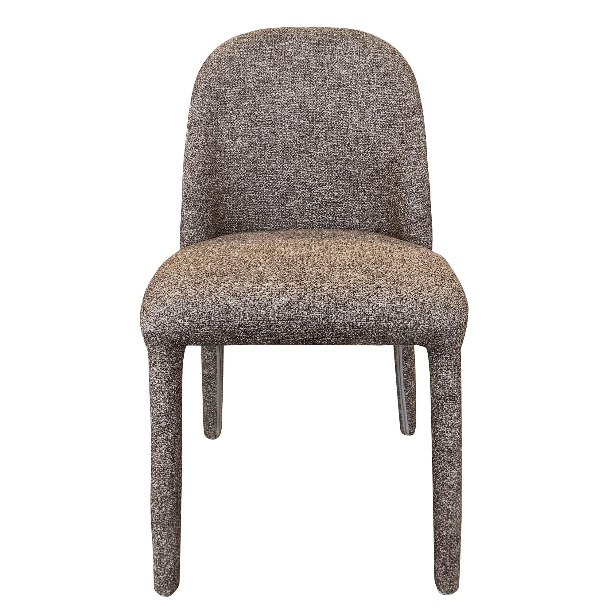 This statement piece will be the centre of attention in your home. The reeded finish on the pedestal is perfectly topped with a sintered stone top creating a refined piece that will elevate your carefully designed dining space. The tone-on-tone travertine finish is an easy match to various decor styles. The contoured back on this beauty of a dining chair will provide hours of seated support while the clean lines will work well in any contemporary or transitional space. Soft, textured fabric upholstery covers not only the full seat and back, but also the metal legs, creating a monotone look that will make a big style statement.
