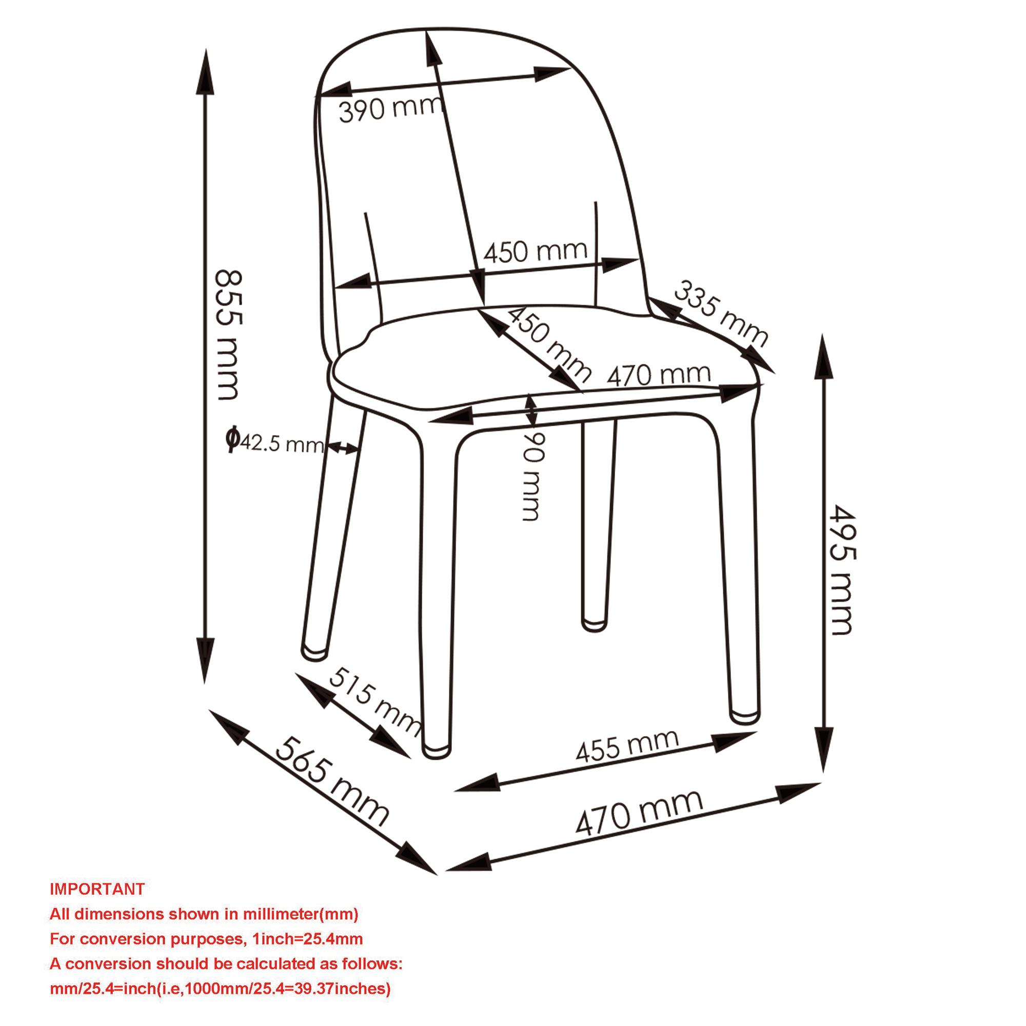 - Dimensions: Table – 47.25″Dia. x 30″H; Chair – 18.50 x 22.25 x 33.75″H