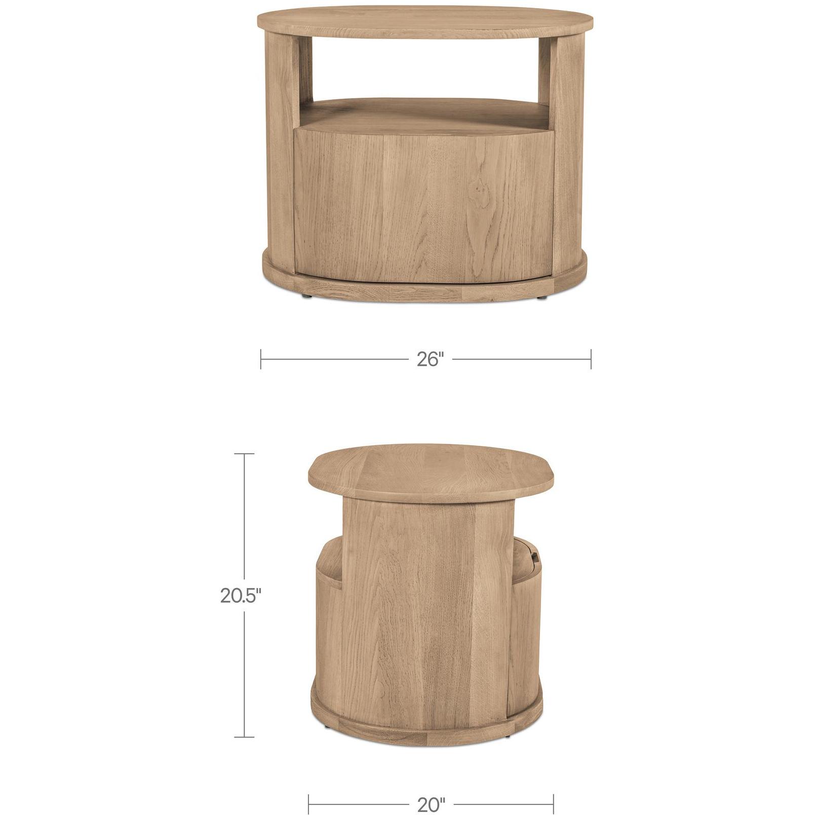 The Tommy nightstand embraces modern simplicity in a natural finish. Its distinctive racetrack capsule shape adds a contemporary touch to the bedroom, seamlessly blending form and function. This nightstand features a solid oak frame with oak veneer details, offering durability and refined style. The soft-close drawer and open shelf provide versatile storage options in a piece that speaks to modern appeal.