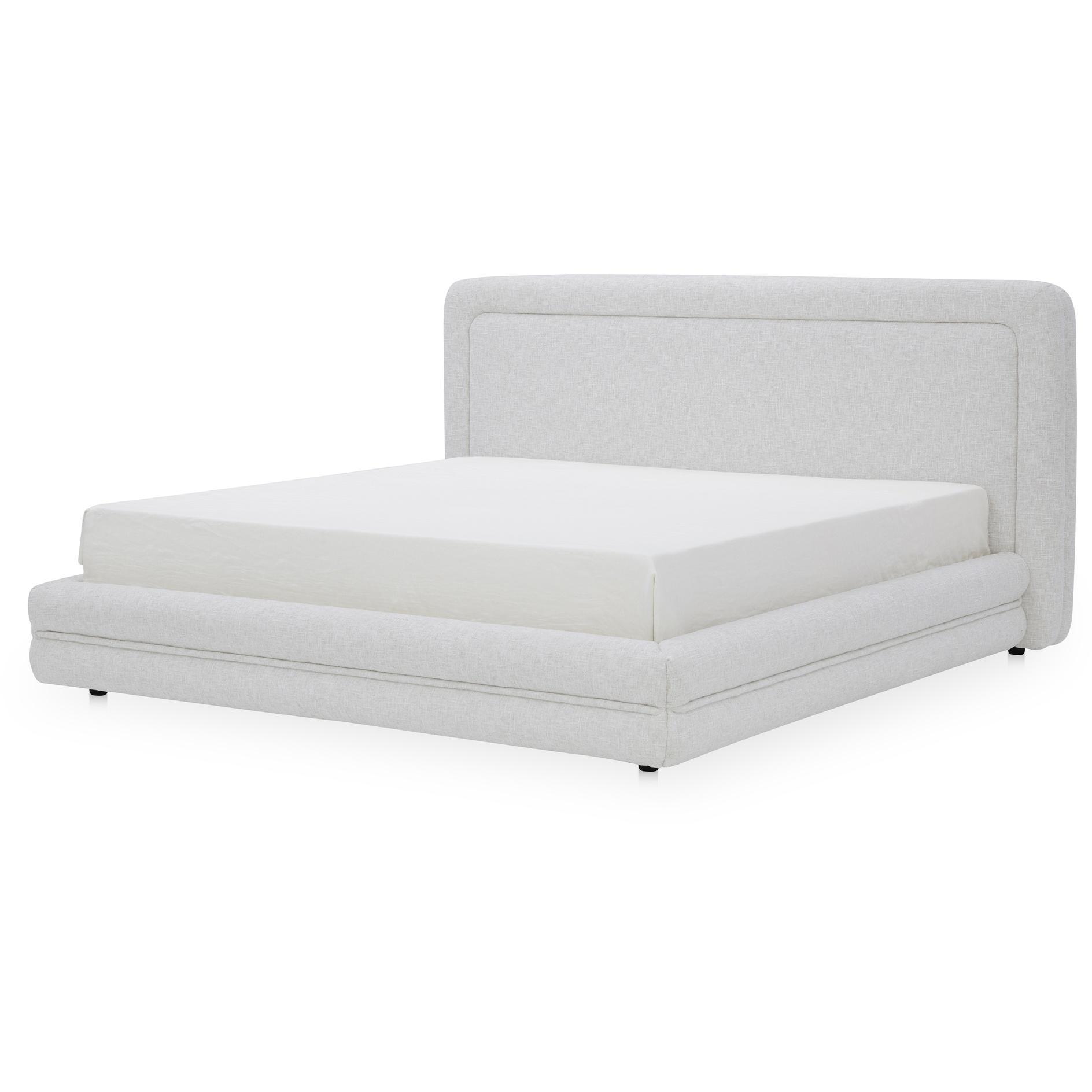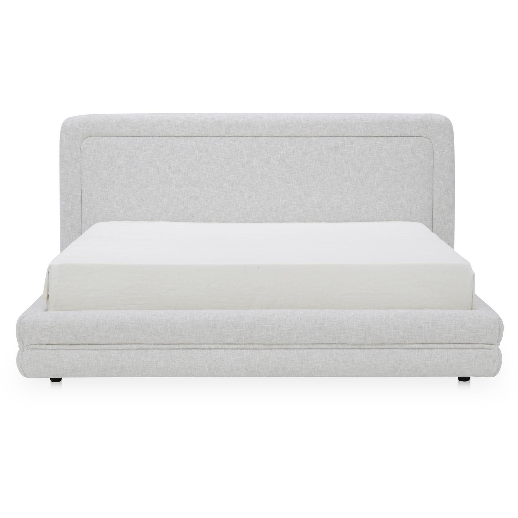 A headboard with a hug. The Tory King Bed pairs a generous headboard with rounded framing, softened by tufted detailing across the rails and footboard. Upholstered in pebble-toned polyester, it’s cushioned with high-density foam for comfort. Supported by a solid wood and plywood frame, Tory turns bedroom basics into a design statement you’ll look forward to every night.