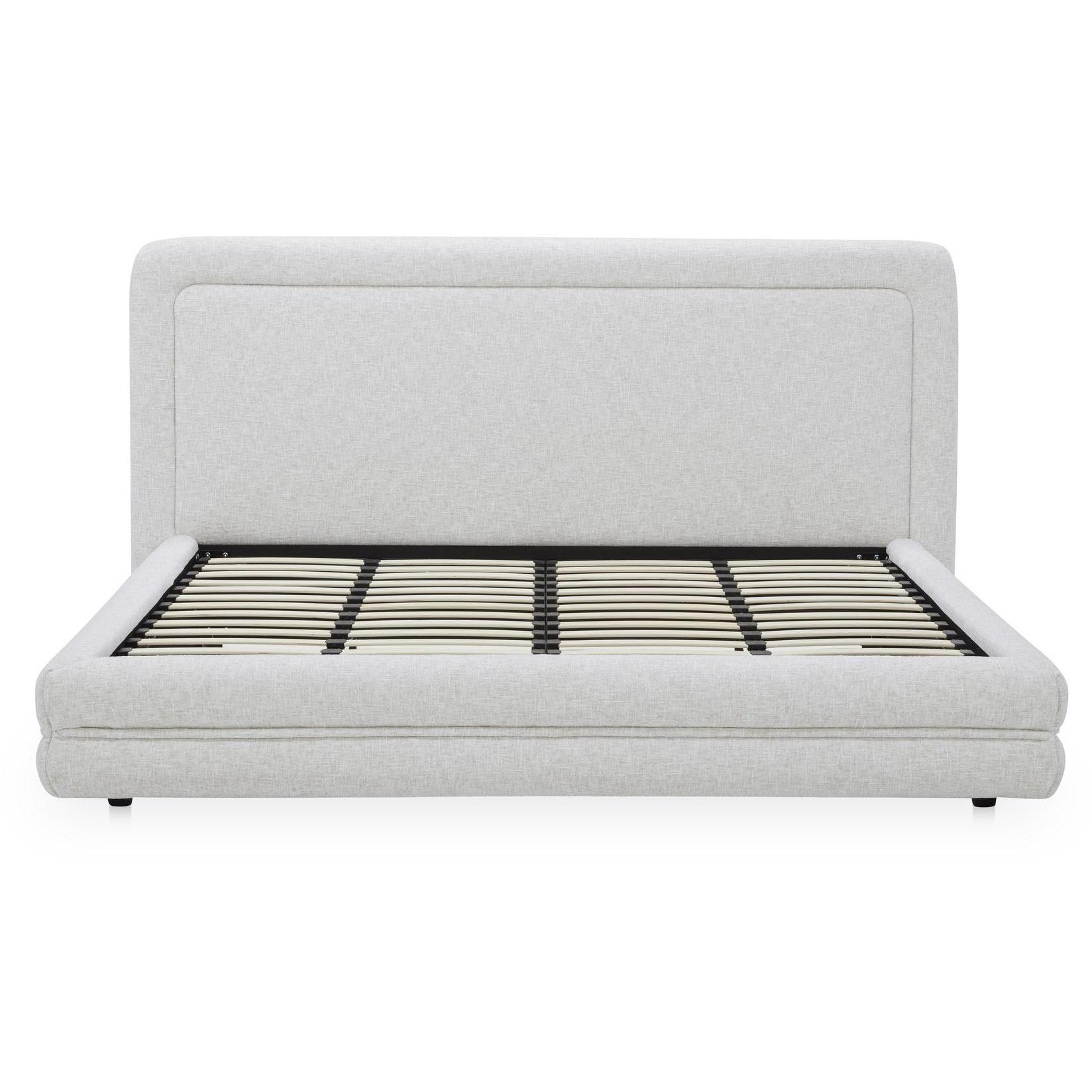 A headboard with a hug. The Tory Queen Bed pairs a generous headboard with rounded framing, softened by tufted detailing across the rails and footboard. Upholstered in pebble-toned polyester, it’s cushioned with high-density foam for comfort. Supported by a solid wood and plywood frame, Tory turns bedroom basics into a design statement you’ll look forward to every night.