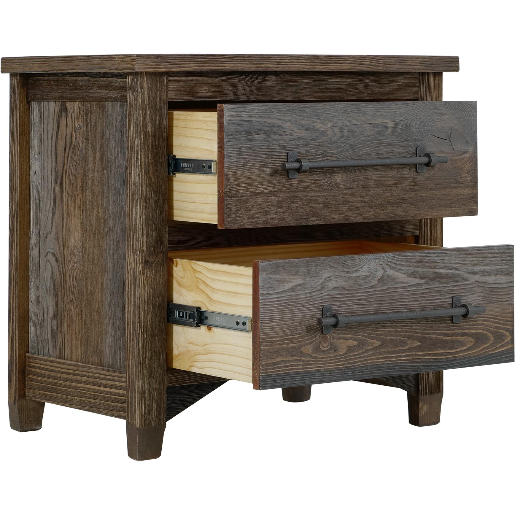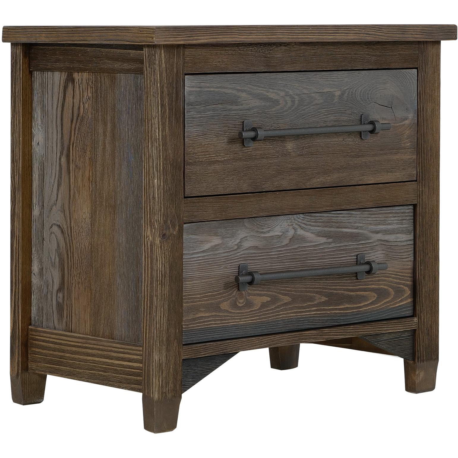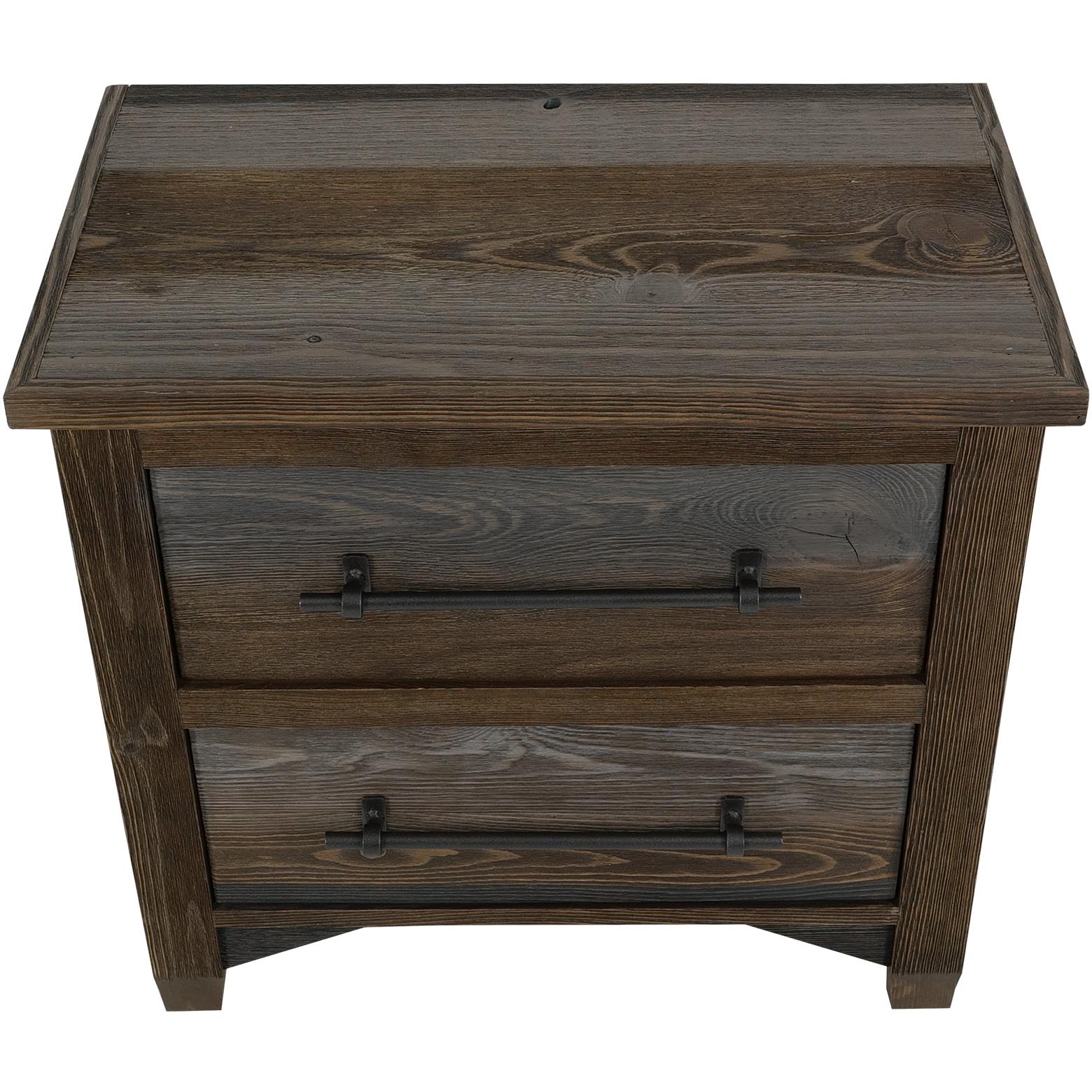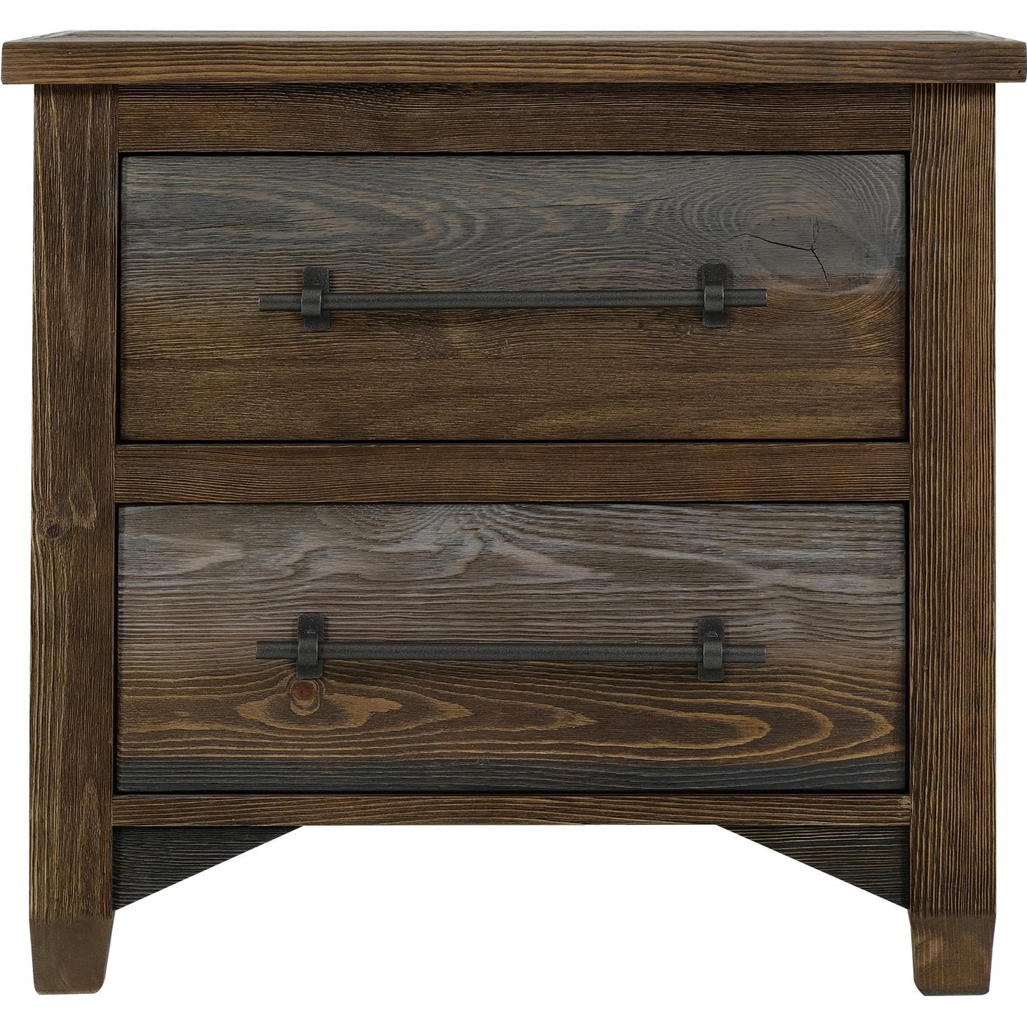 Elevate your bedroom environment with the Town collection, a beautiful blend of rustic style and modern sophistication. Each piece features a multi-step lacquer finish that highlights rich brown and gray tones, enhancing the wood’s natural beauty. Crafted from pine and poplar, this collection boasts a wire-brushed wood texture for added character. This beautifully designed bedroom set will transform your space and leave a lasting impression. make The nightstand offers ample storage with two spacious drawers. Iron center handle pulls add an industrial touch, beautifully contrasting with the warm design.