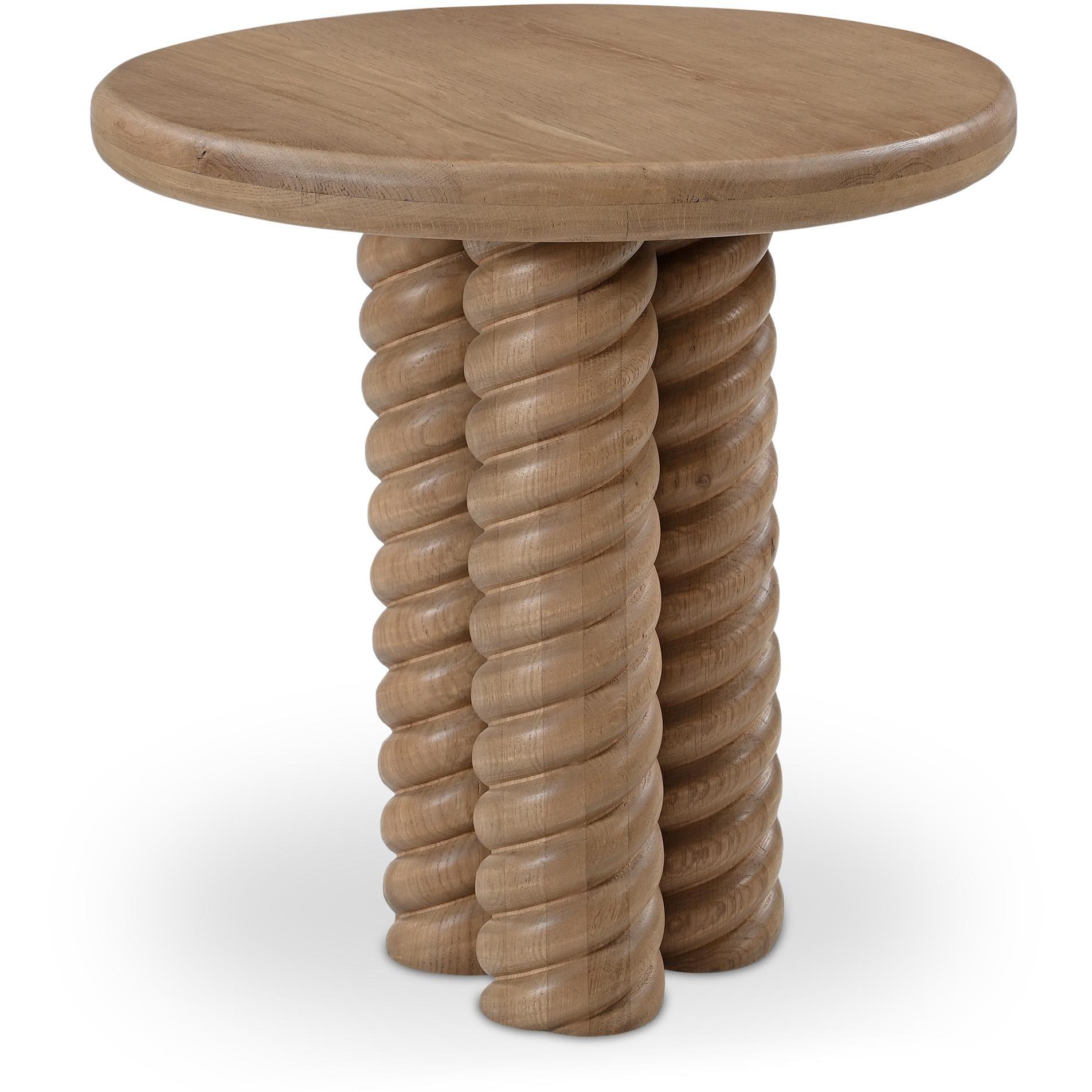 The Treccia side table embodies a contemporary reinterpretation of classical aesthetics, distinguished by its intricate turned and braided details. The table features an exaggerated, elegantly detailed pedestal base, presenting a bold modern twist while ensuring practicality. Its pedestal design is visually appealing and enhances functionality, creating a welcoming, uncluttered space for gatherings and everyday use.