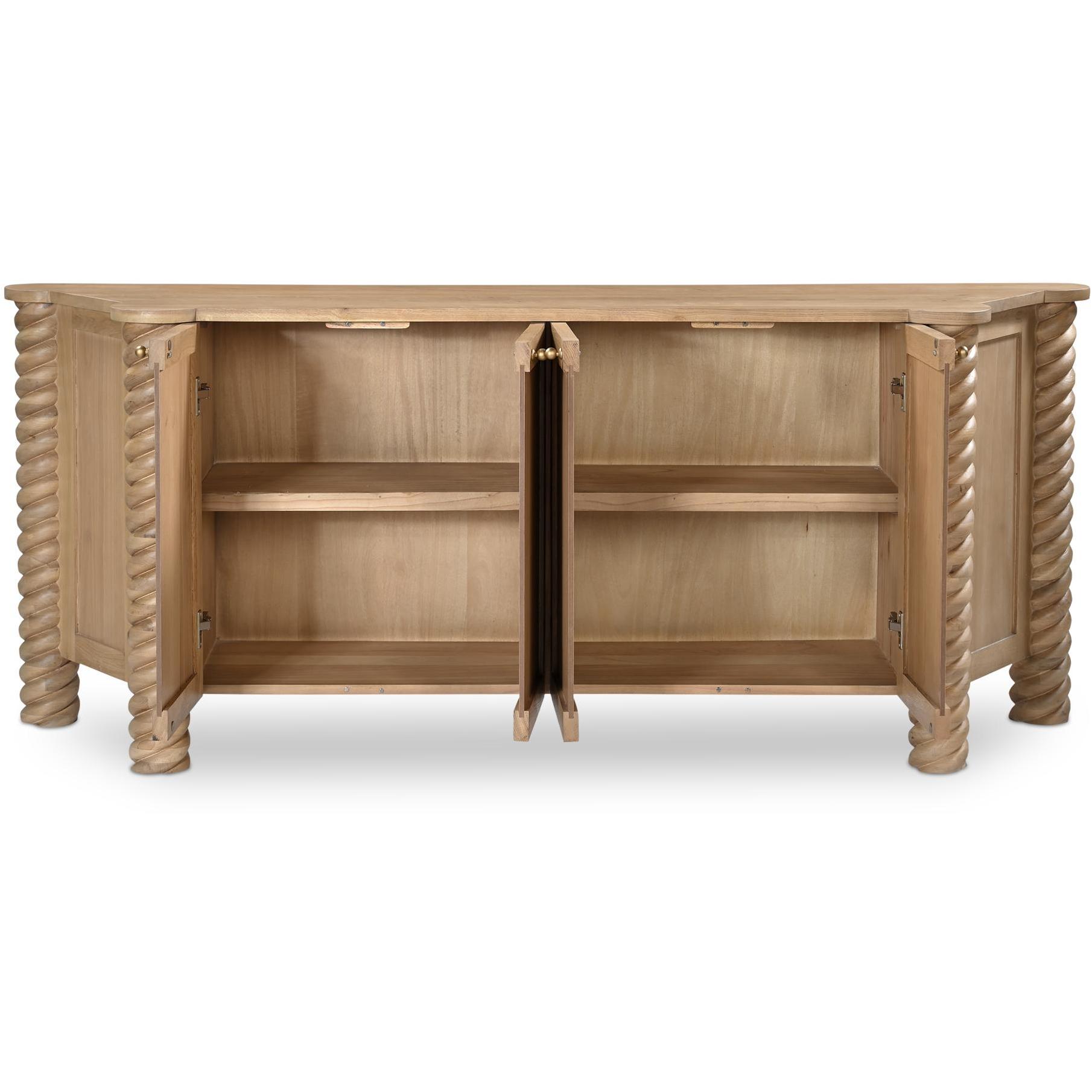 The Treccia sideboard embodies a contemporary reinterpretation of classical aesthetics, distinguished by its intricate turned and braided details. The sideboard features exaggerated, elegantly detailed legs, presenting a bold modern twist while ensuring practicality. Its design is visually appealing while creating a welcoming, uncluttered space for everyday use.