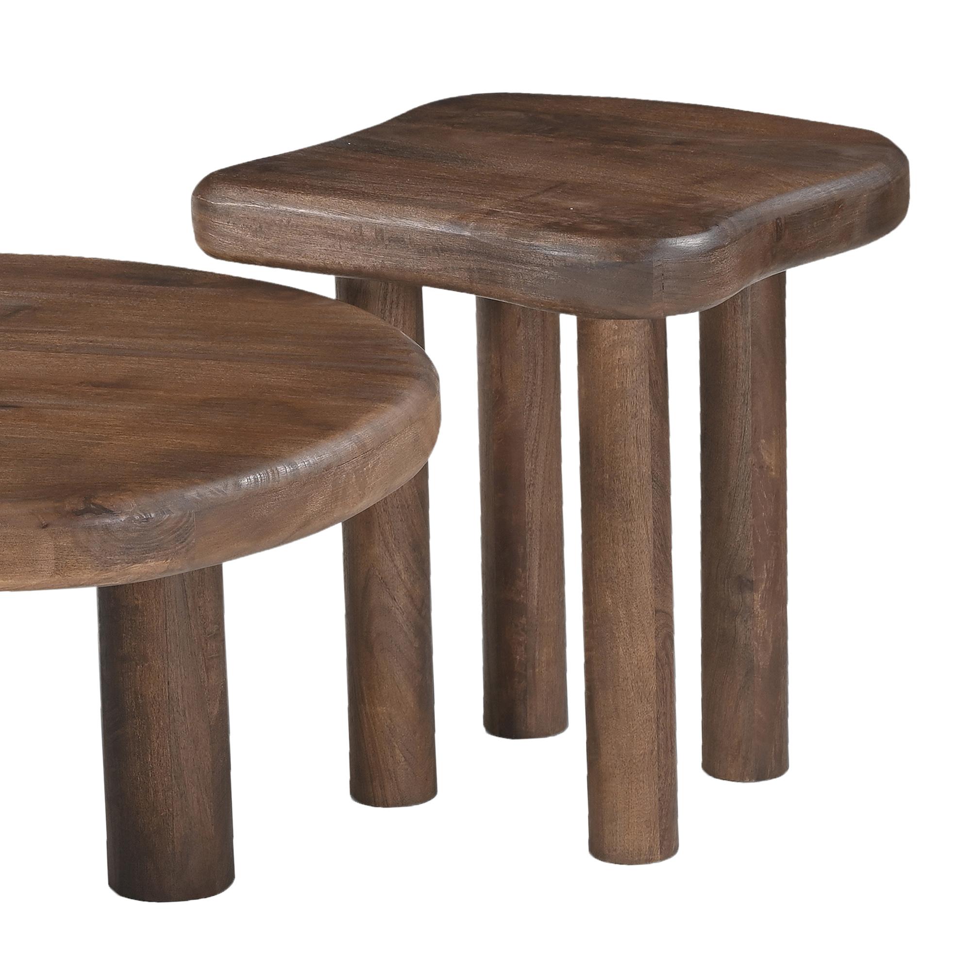 This gorgeous and sophisticated table is meticulously crafted from sustainably-sourced, solid mango wood, providing a rich and sturdy foundation. The freeform, organic shape table top sits perfectly atop four thick post legs. Great for use in a formal or casual living space.